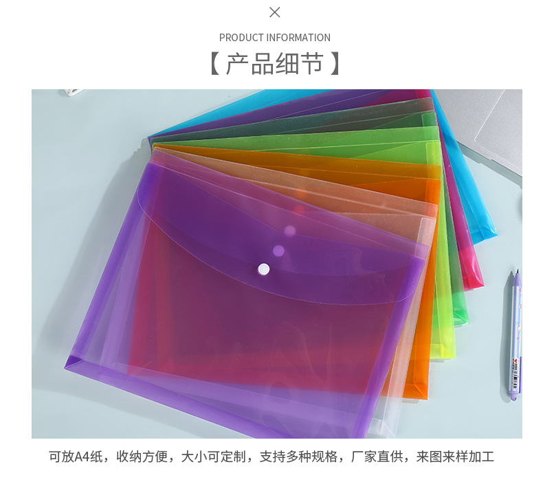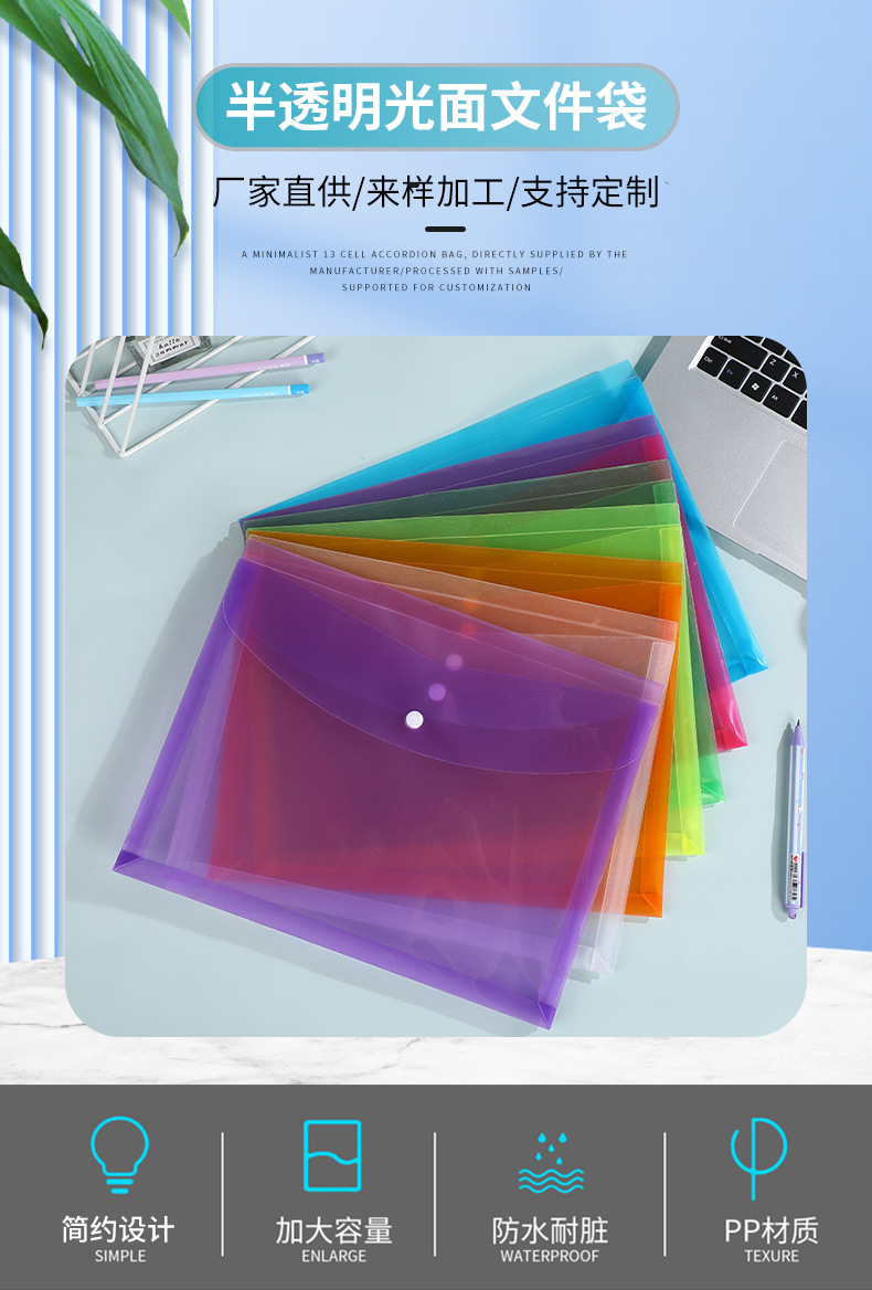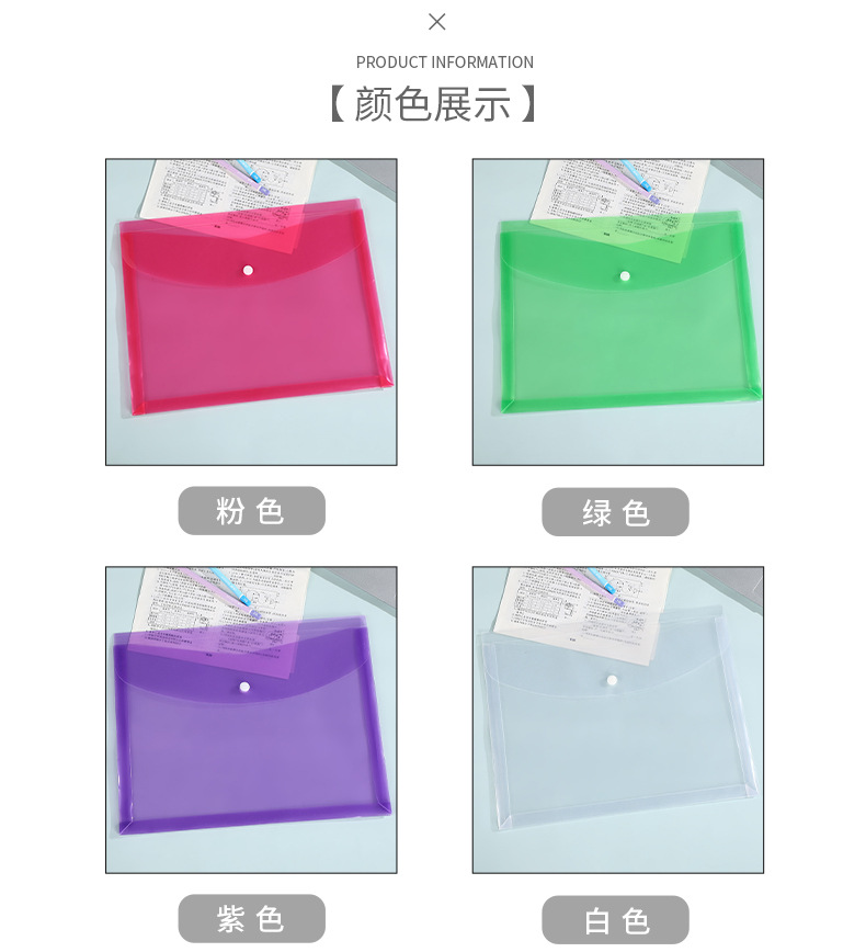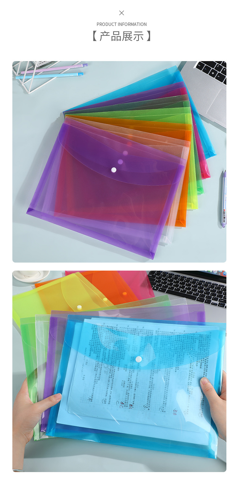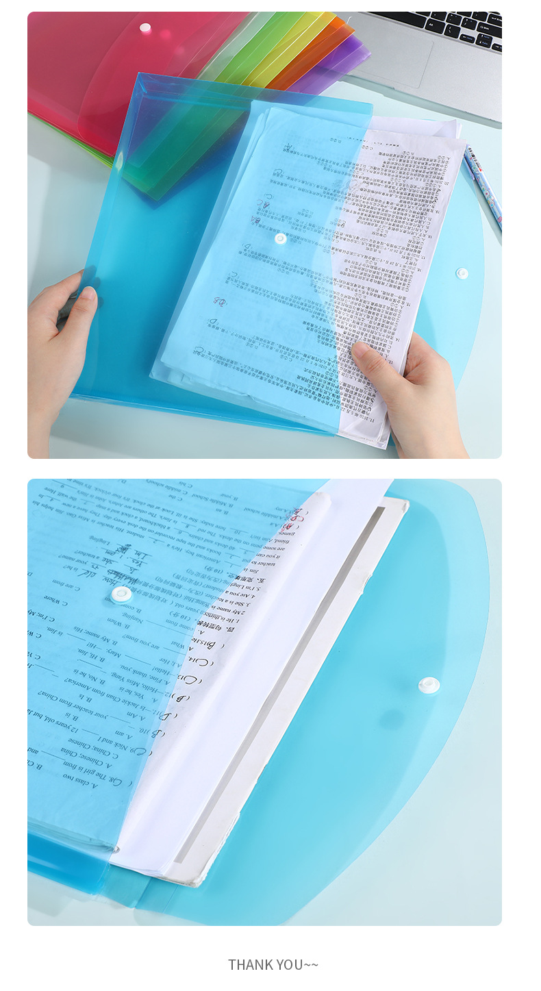 学生文件袋半透明pp纽扣文件夹 办公文档试卷收纳袋大容量档案袋