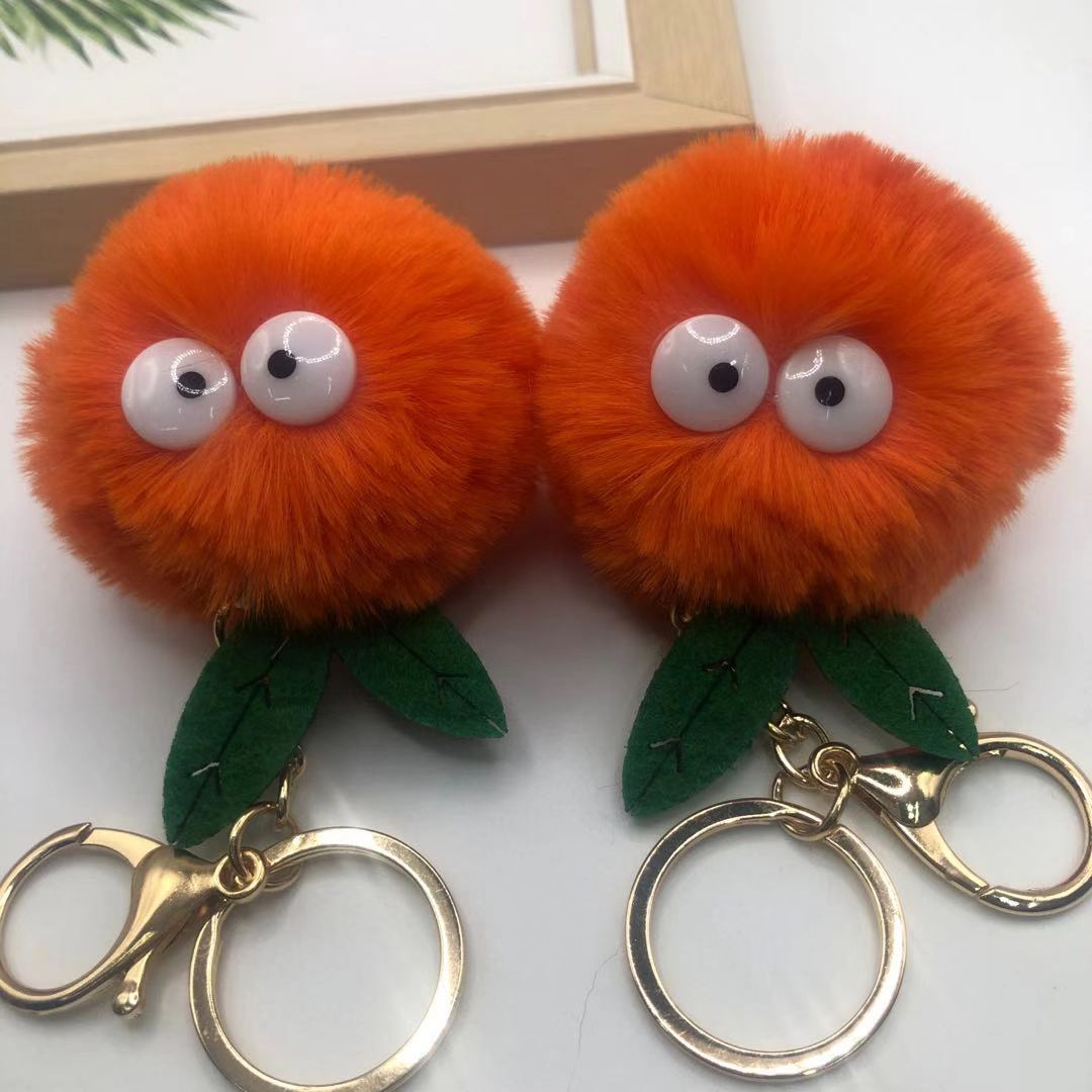 女士包包挂饰可爱毛绒水果钥匙扣装饰 手工DIY毛球小橘子挂件配饰