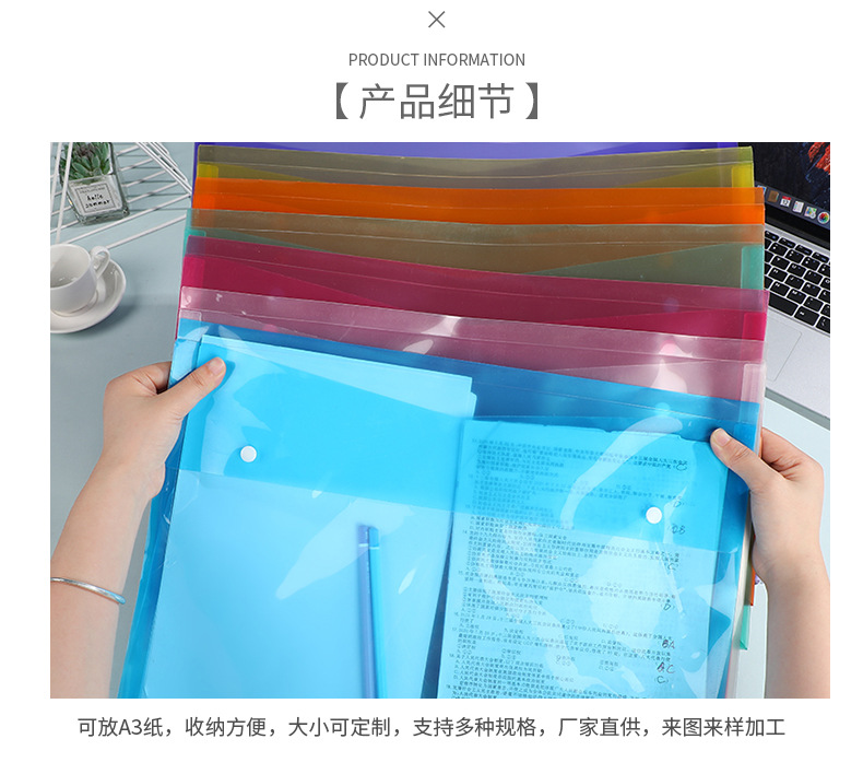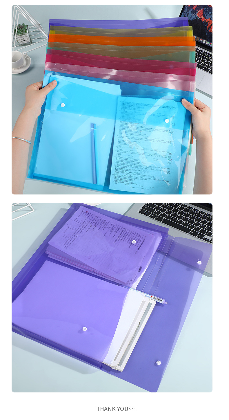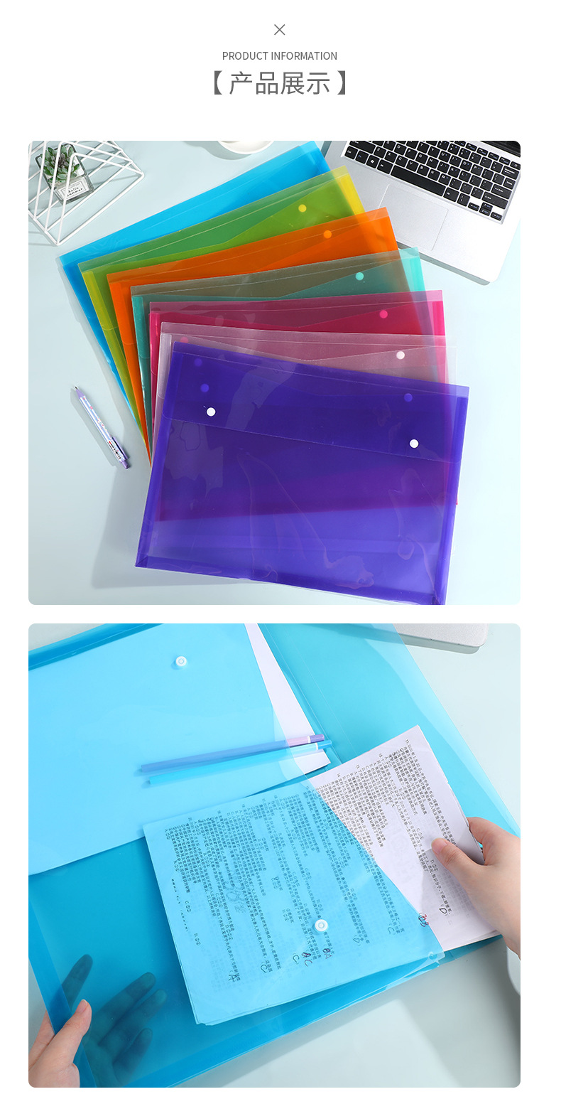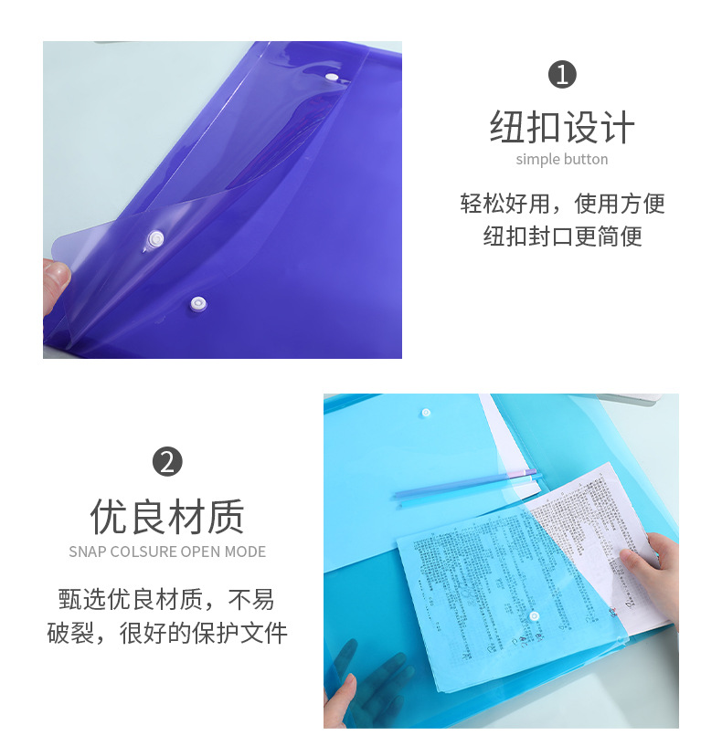 大号双纽扣文件袋 单层透明pp文件夹办公文档学生试卷收纳袋批发