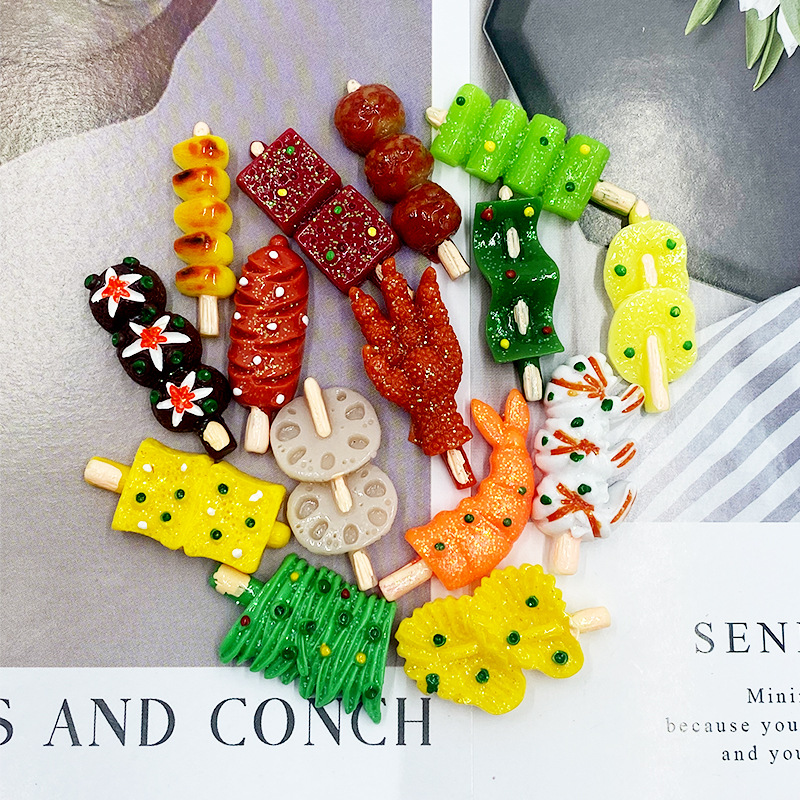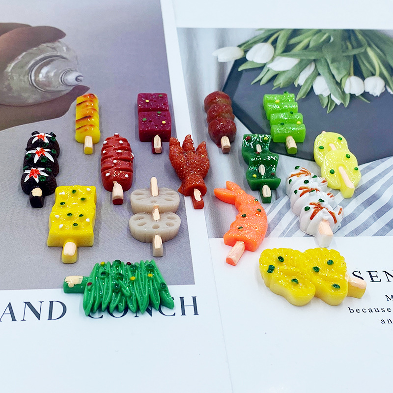 新款树脂食玩摆件仿真烤串趣味微缩食玩批发立体小食玩diy饰品