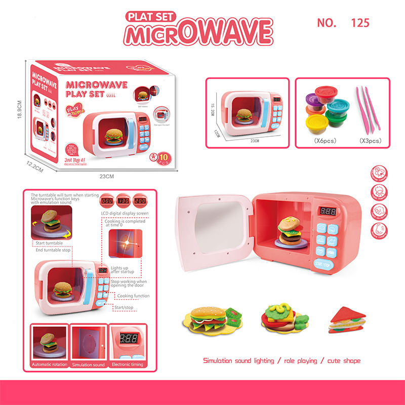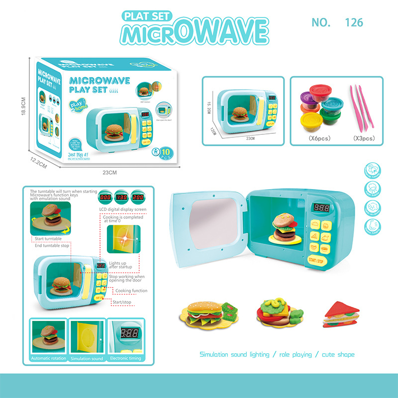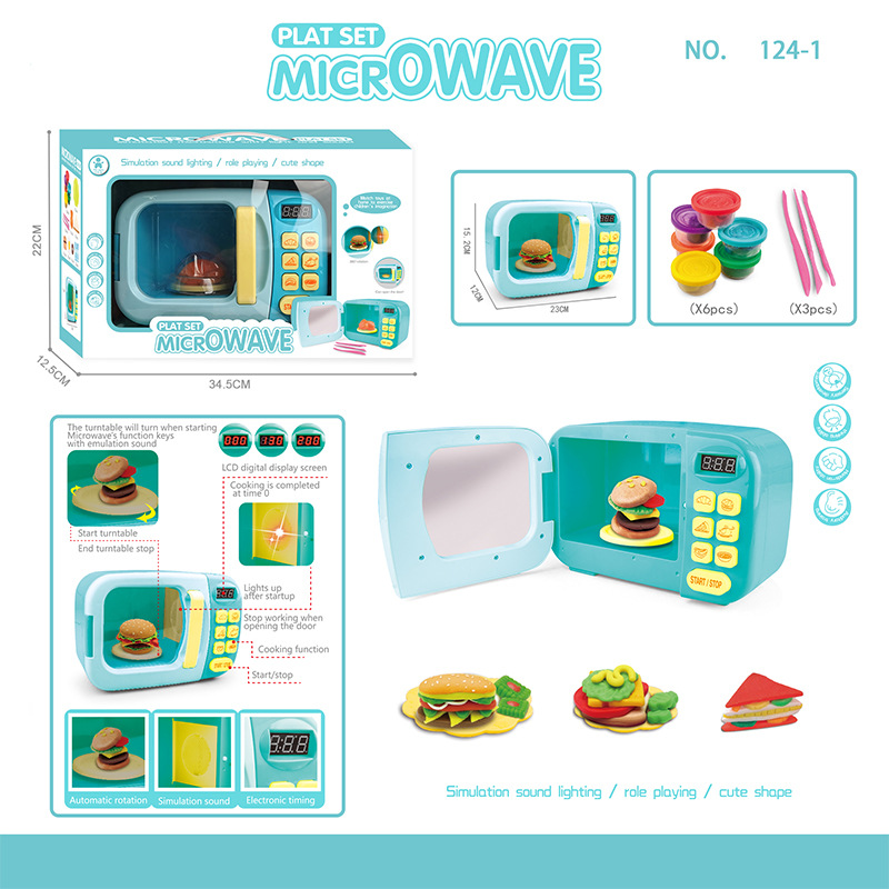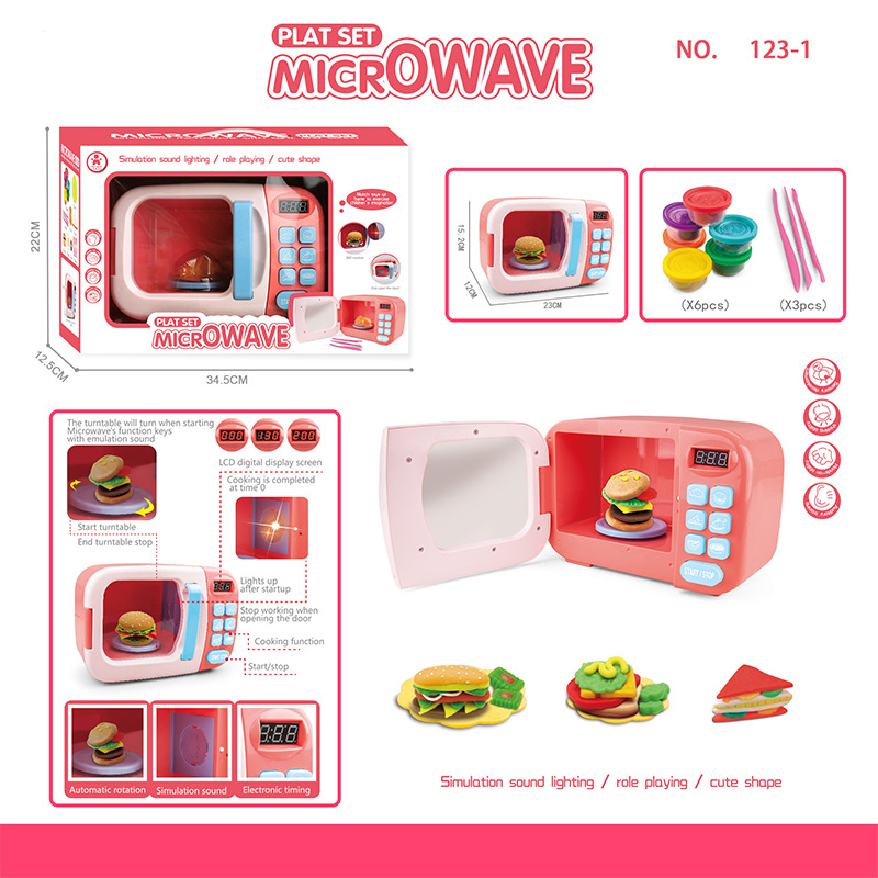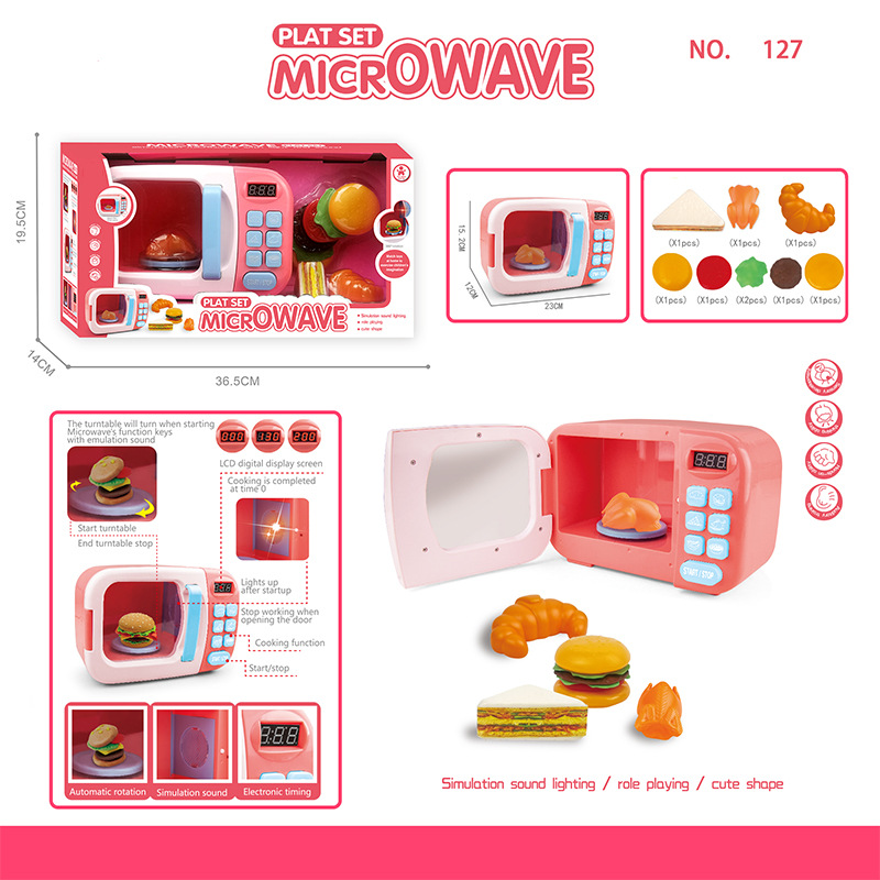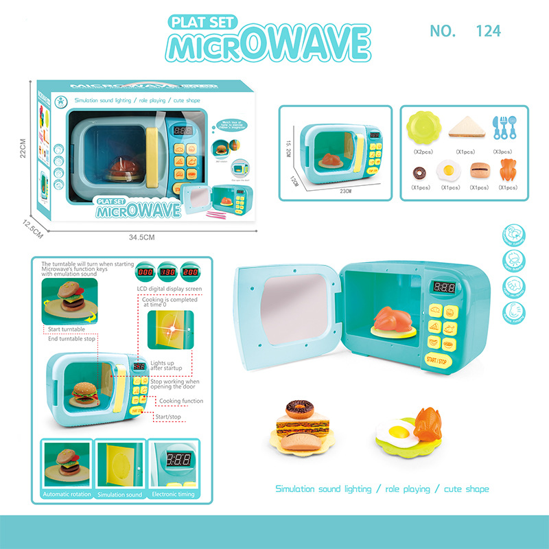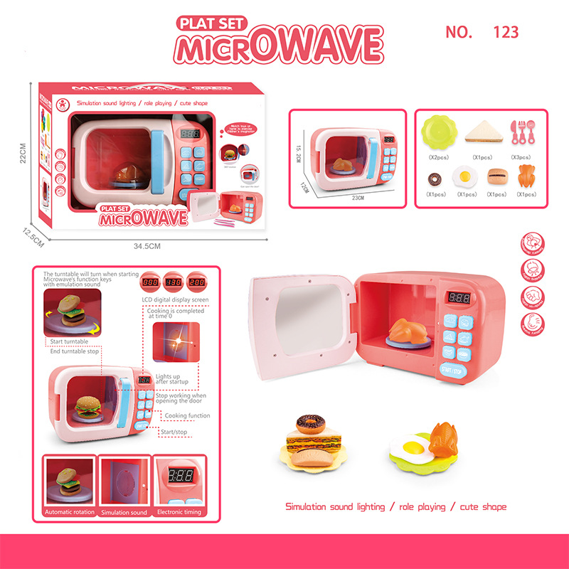跨境儿童过家家迷你厨房仿真小家电微波炉多功能声光电动玩具批发