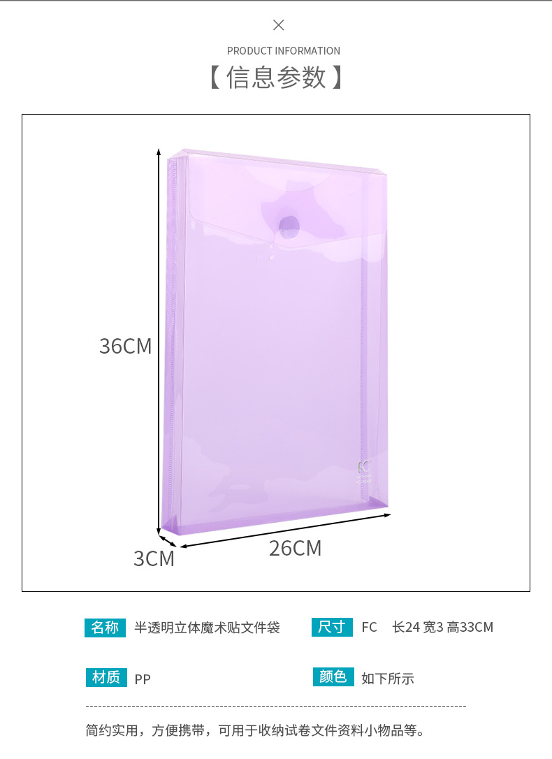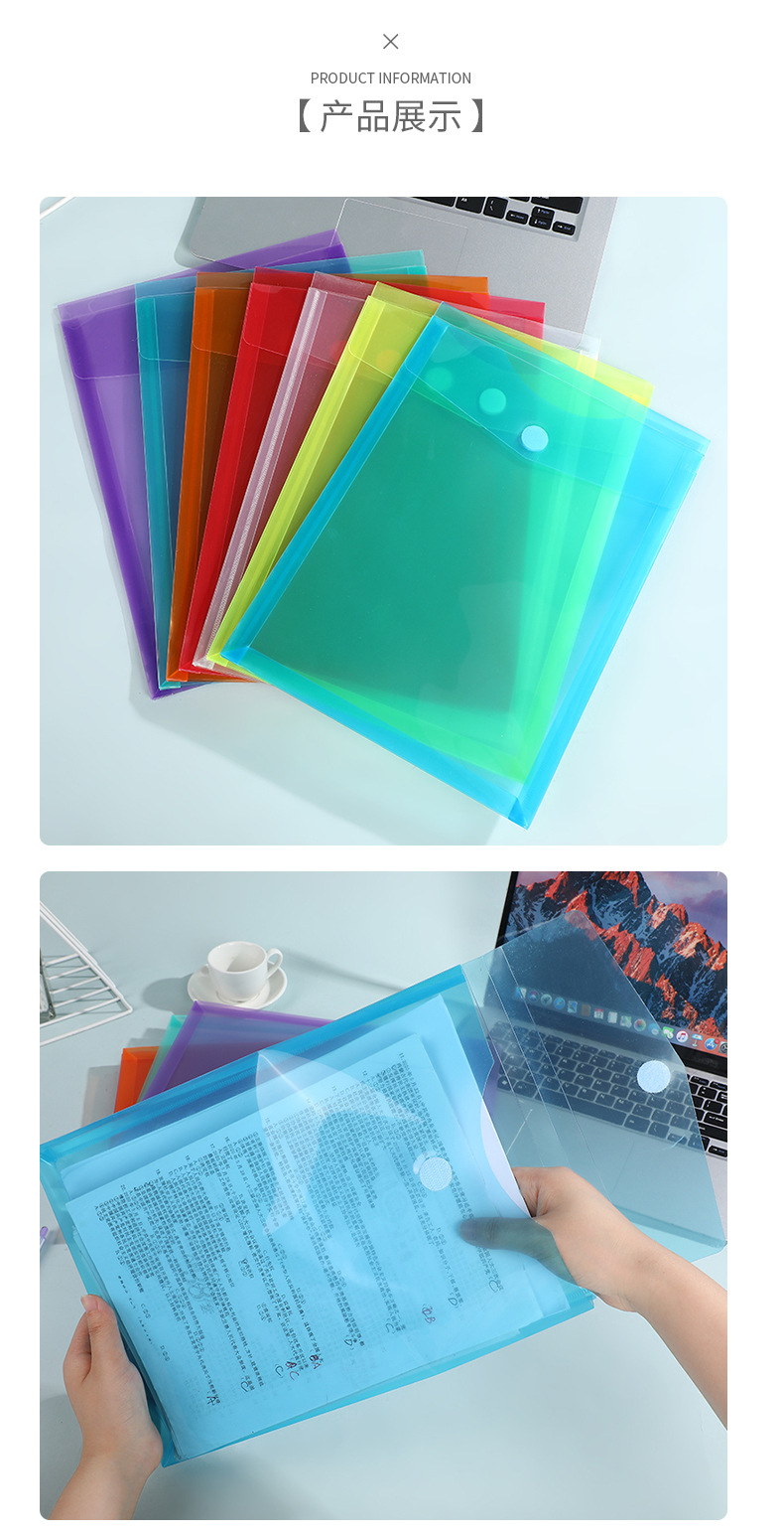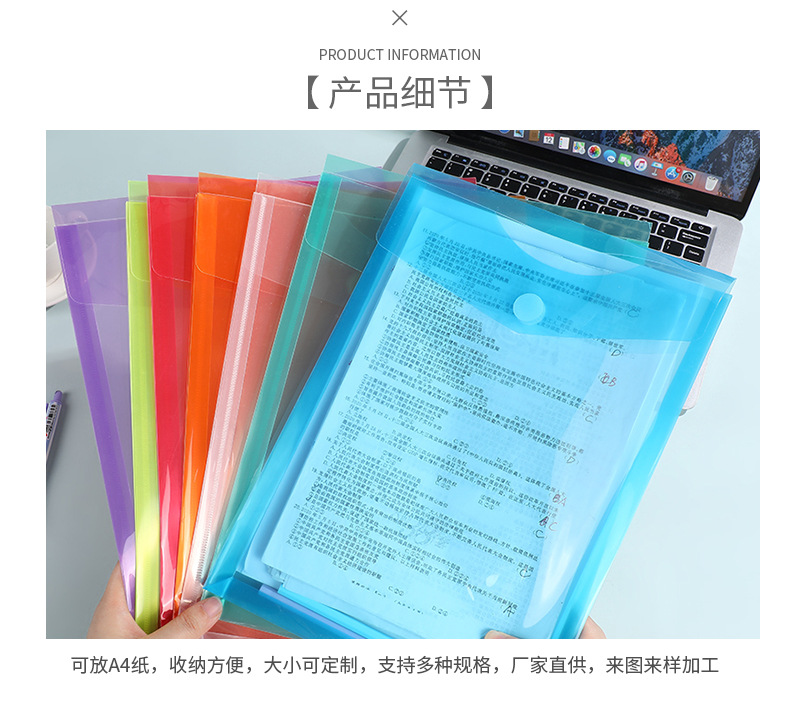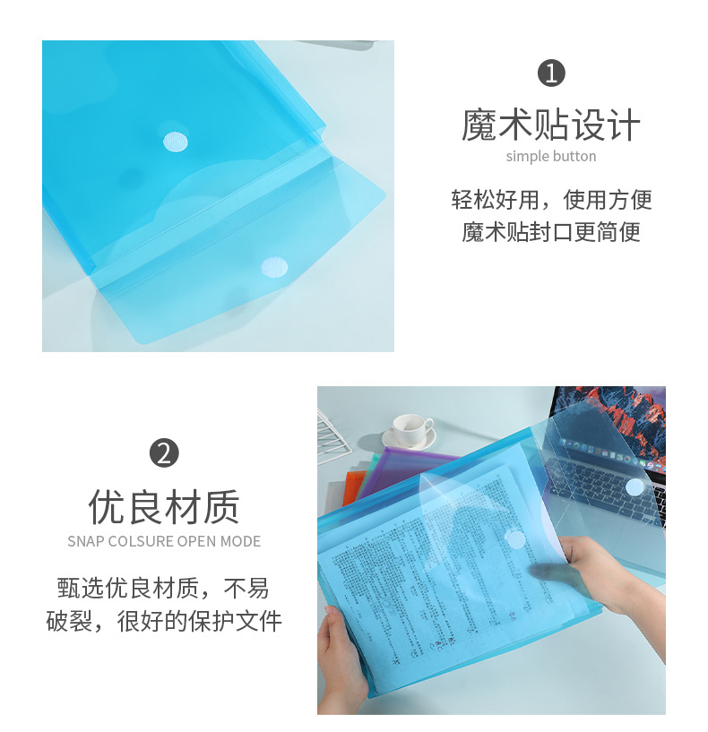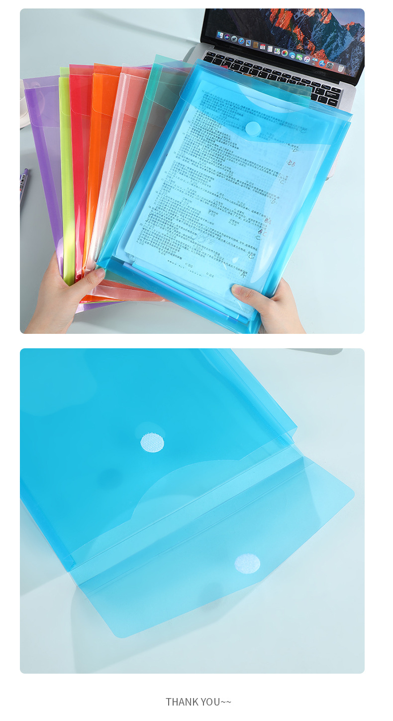 新款魔术贴文件袋 透明纯色资料袋单层试卷档案收纳袋办公文件夹