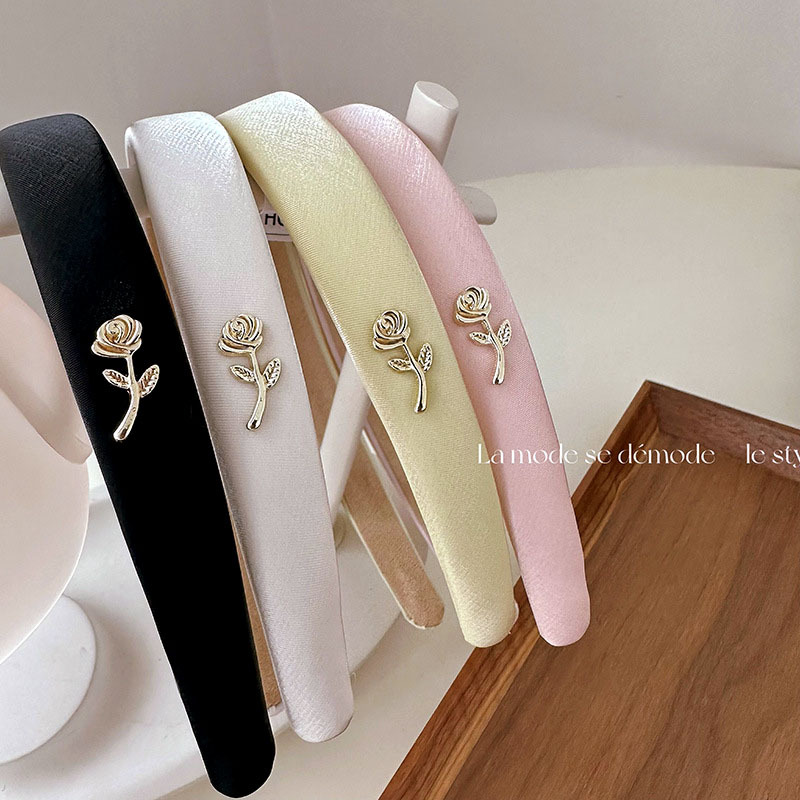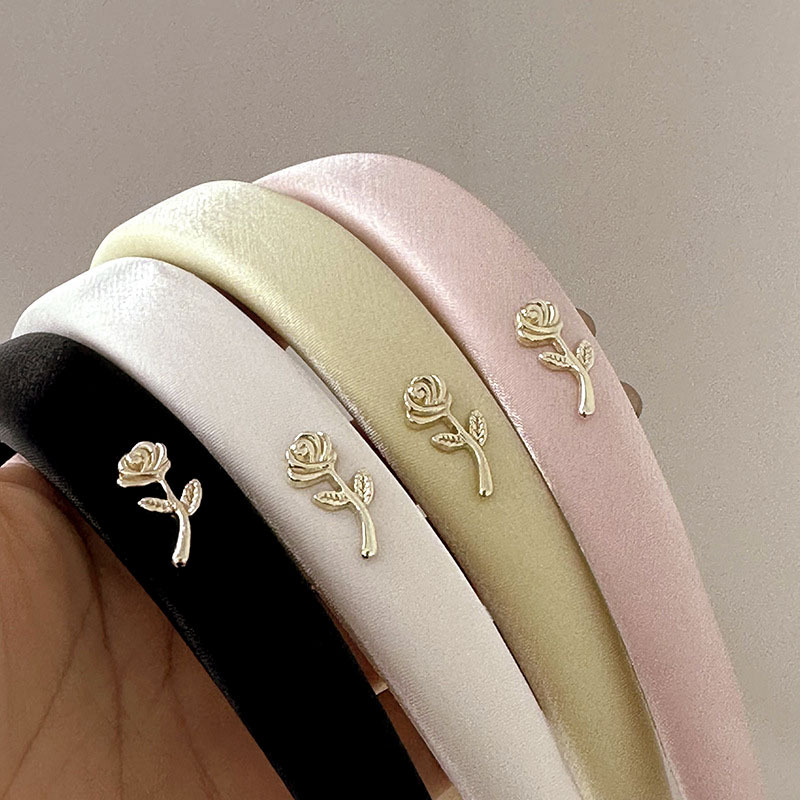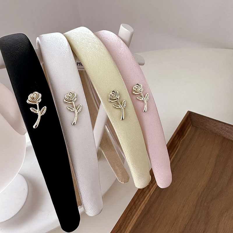 高级感轻奢小香风玫瑰发箍设计感时尚缎面海绵头箍高颅顶气质发饰