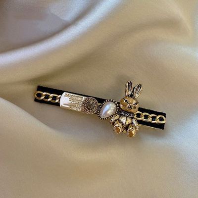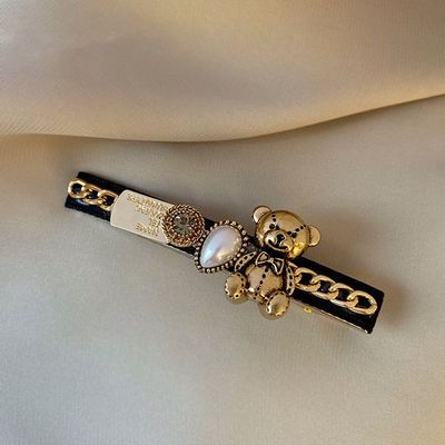 复古小熊夹子头饰珍珠发饰发夹少女边夹刘海鸭嘴夹小香风网红头饰