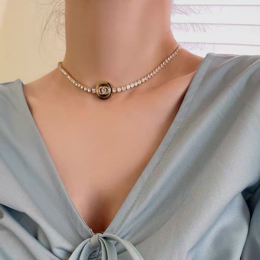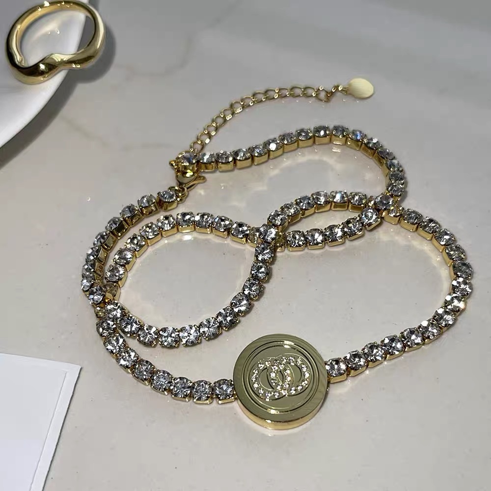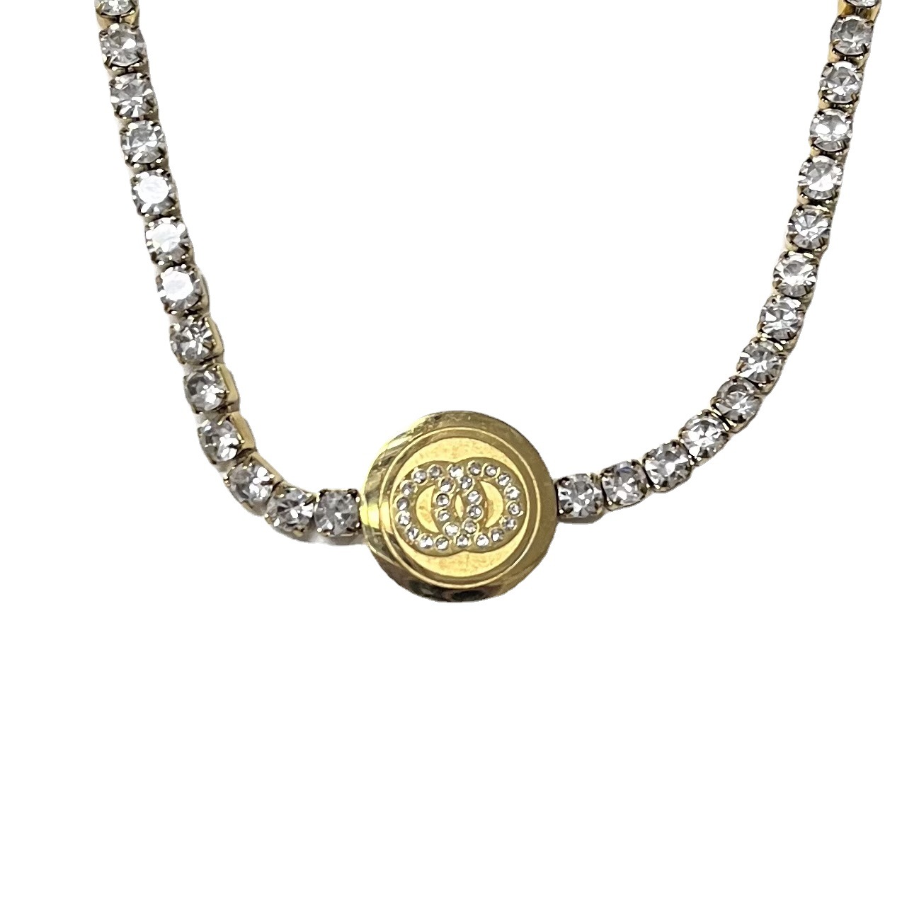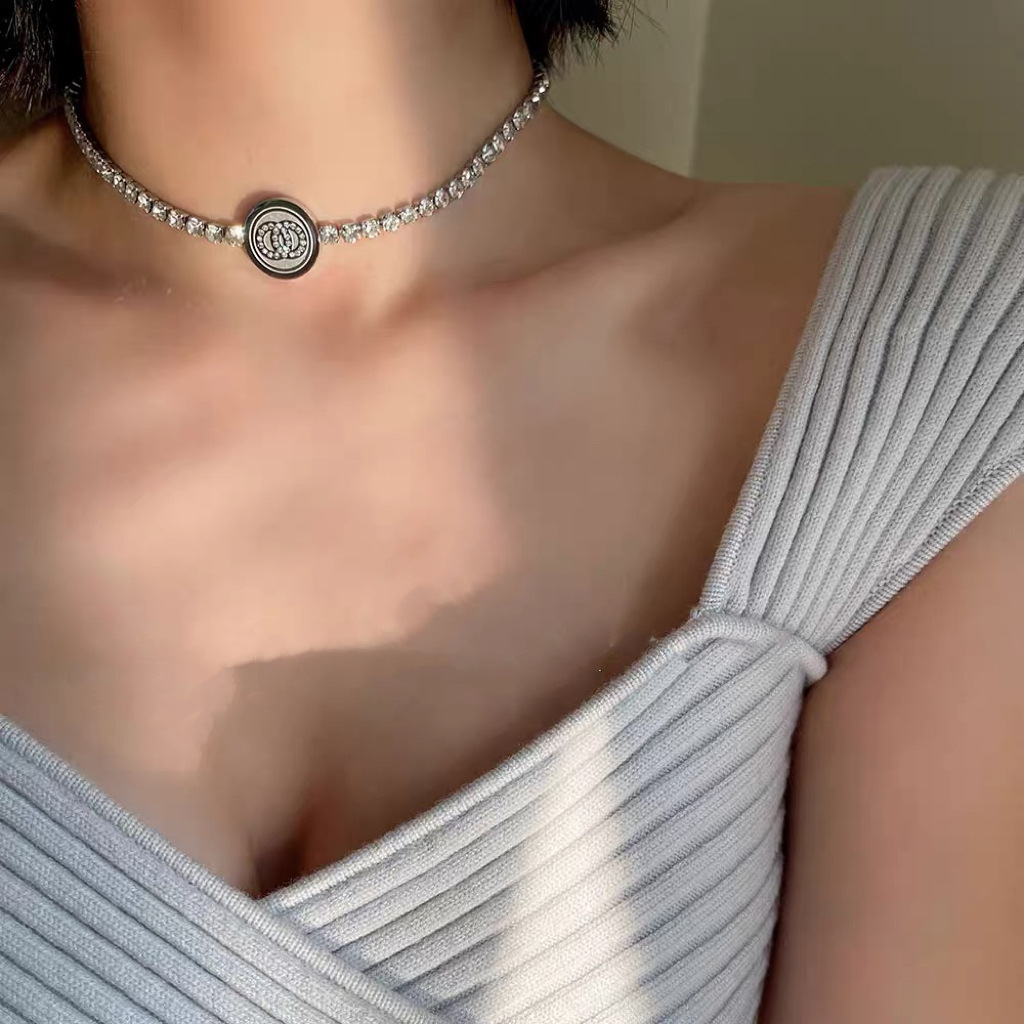 网红爆款钛钢欧美满钻圆牌项链ins女个性潮流配饰18K锁骨链
