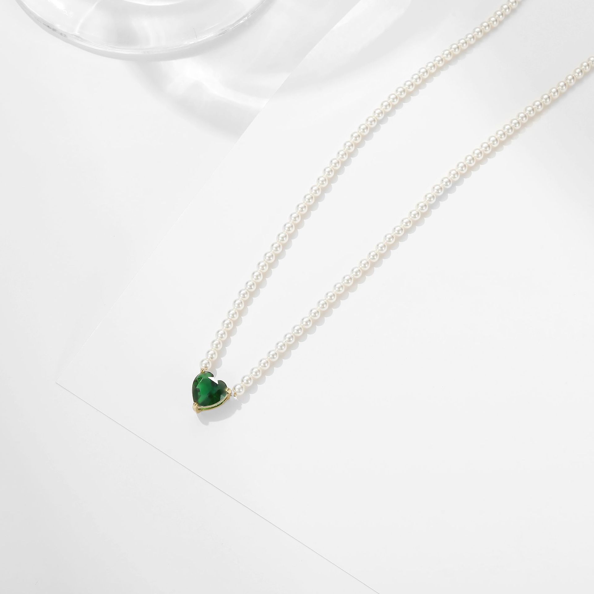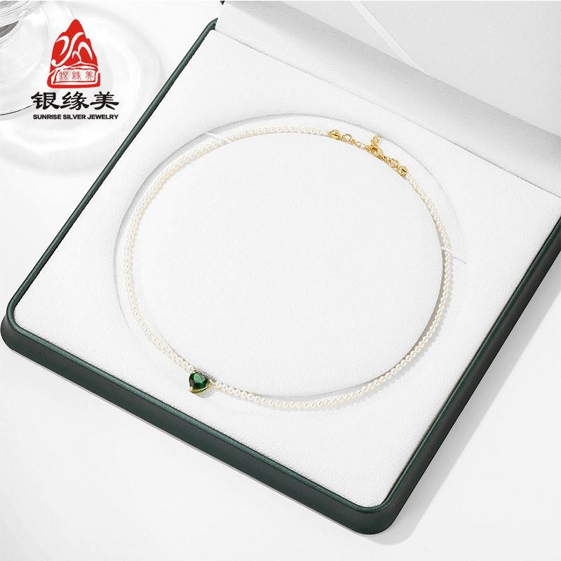 S925银爱心珍珠项链女小众高级感心形颈链锁骨链高级