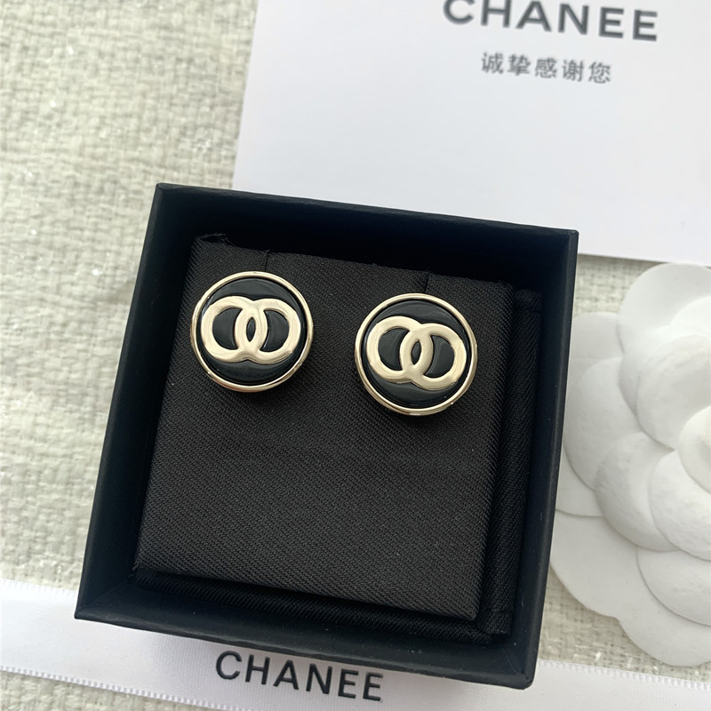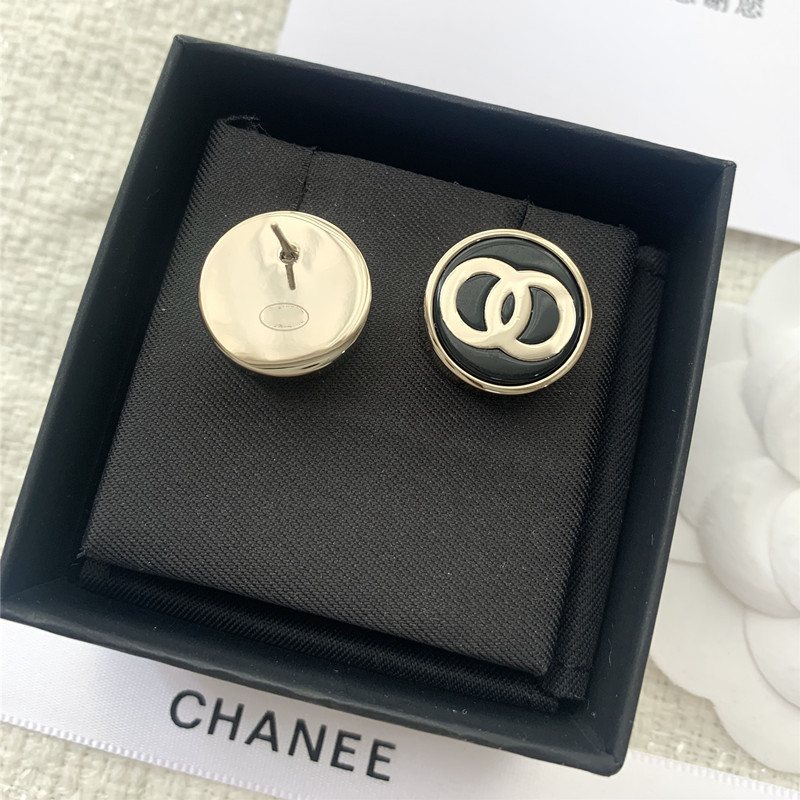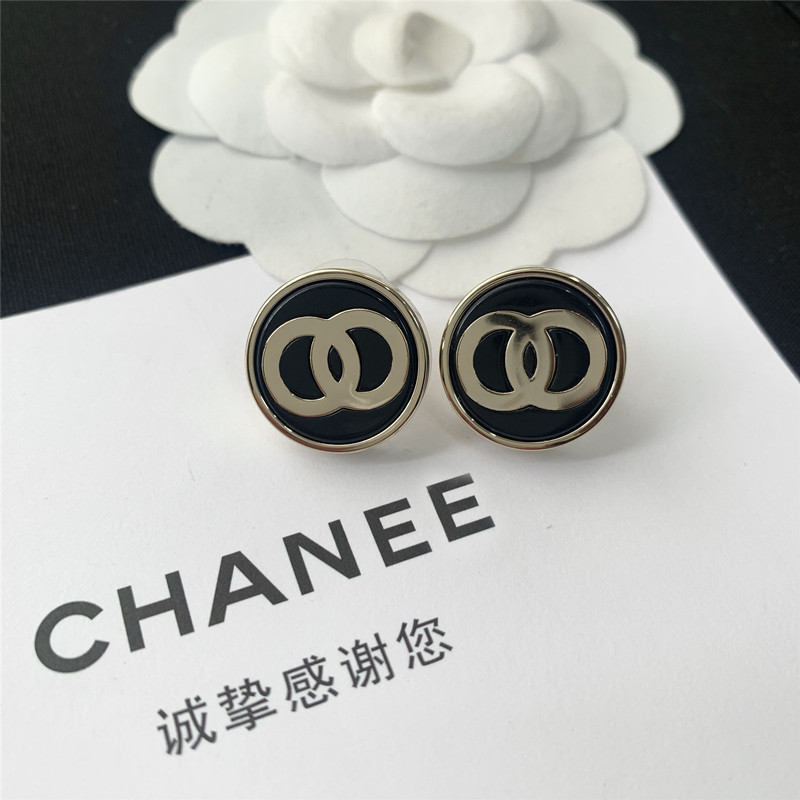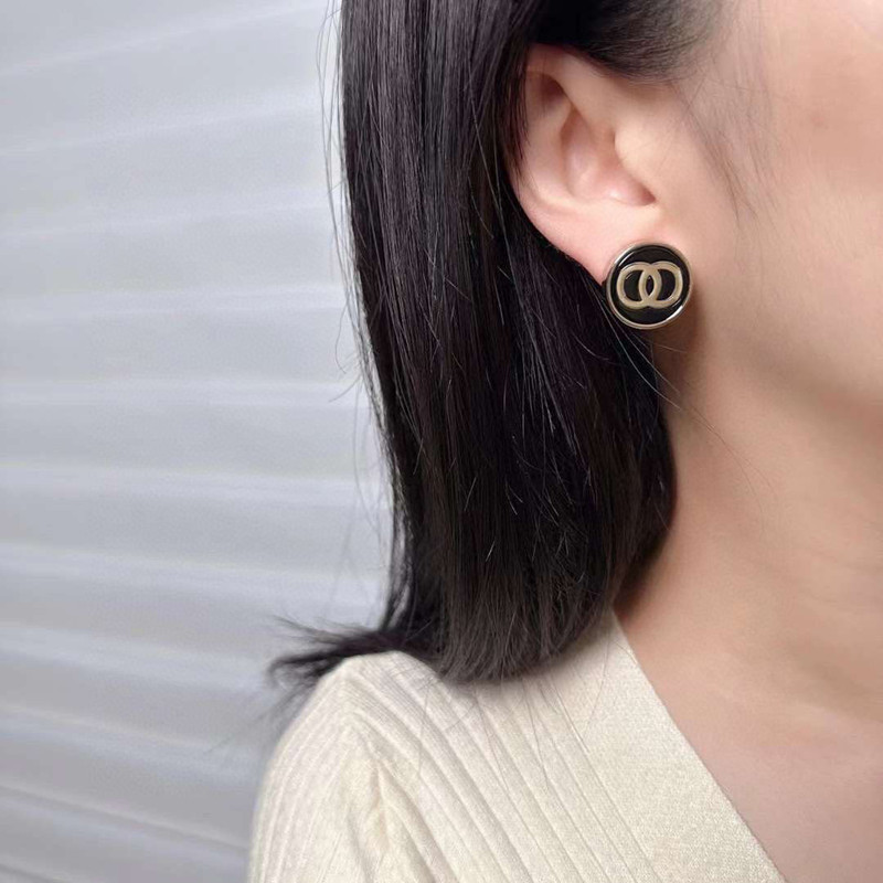 23c新款黑色珐琅纽扣圆形耳钉耳环小香风高级感耳饰