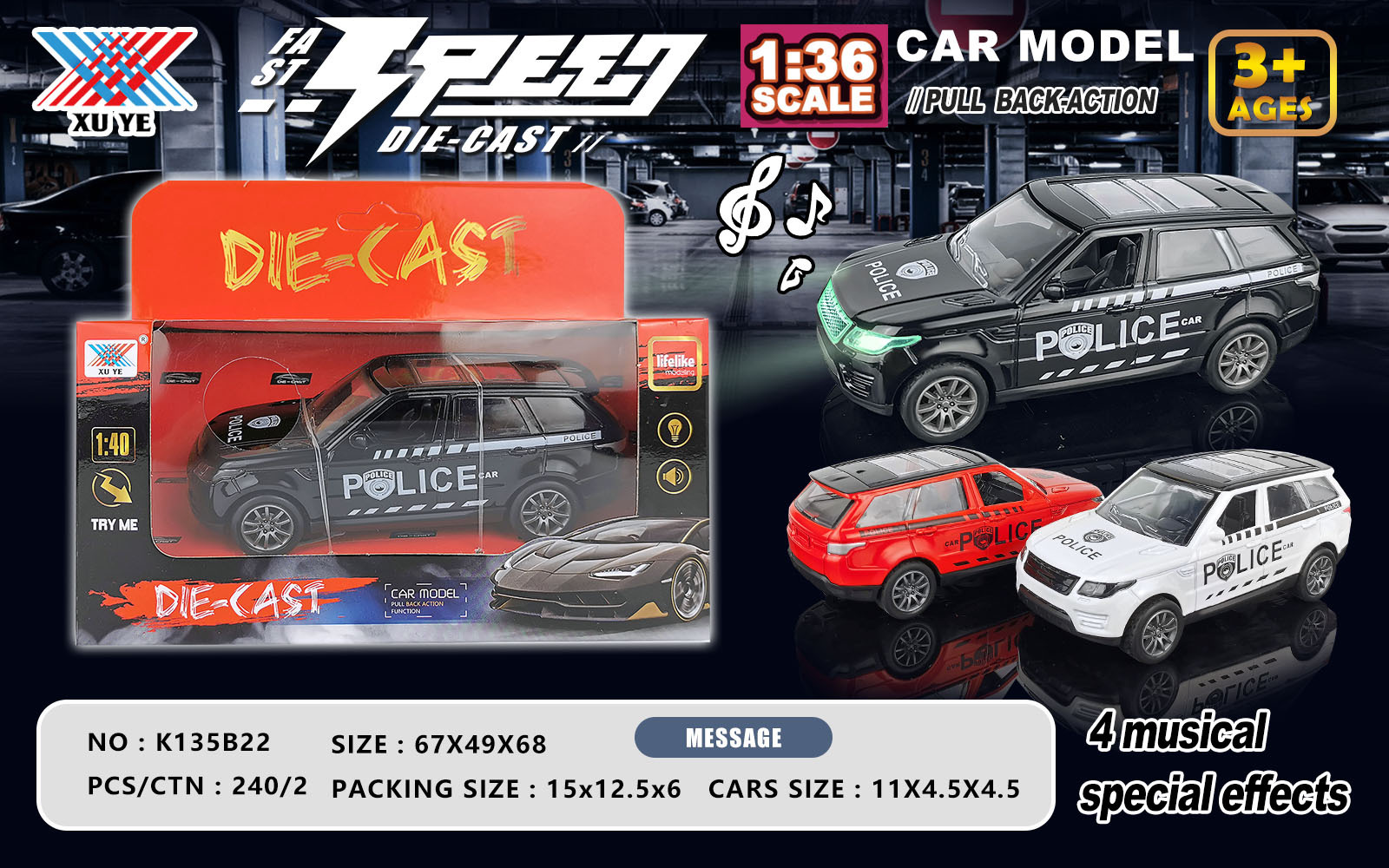 1:36合金回力车合金玩具模型男孩送礼必备多款警车收藏