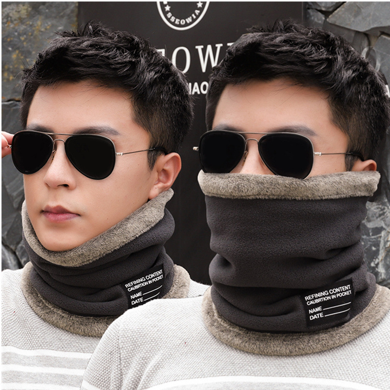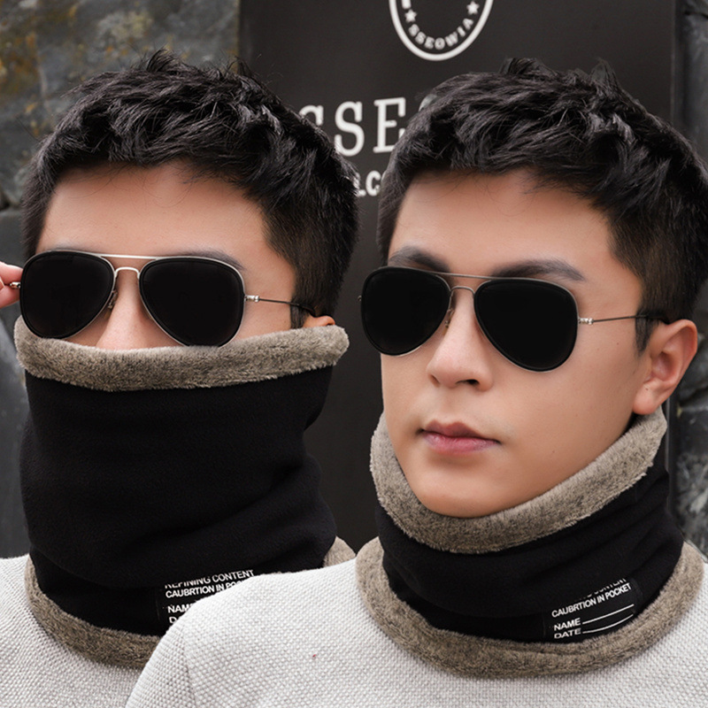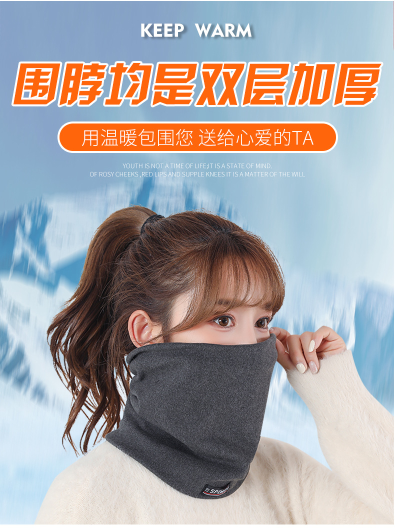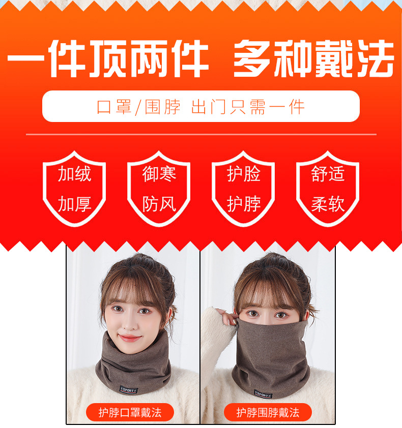 加绒围巾女秋冬季情侣围脖护颈椎潮脖套冬天加厚骑行防寒保暖面罩