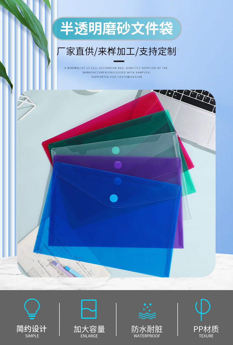 A4文件袋批发 半透明魔术贴资料试卷收纳袋办公文件夹合同档案袋