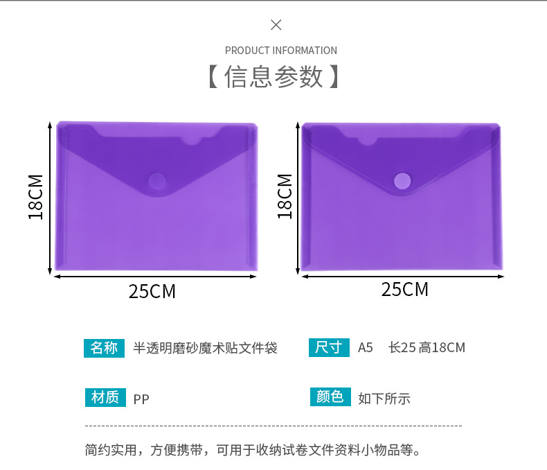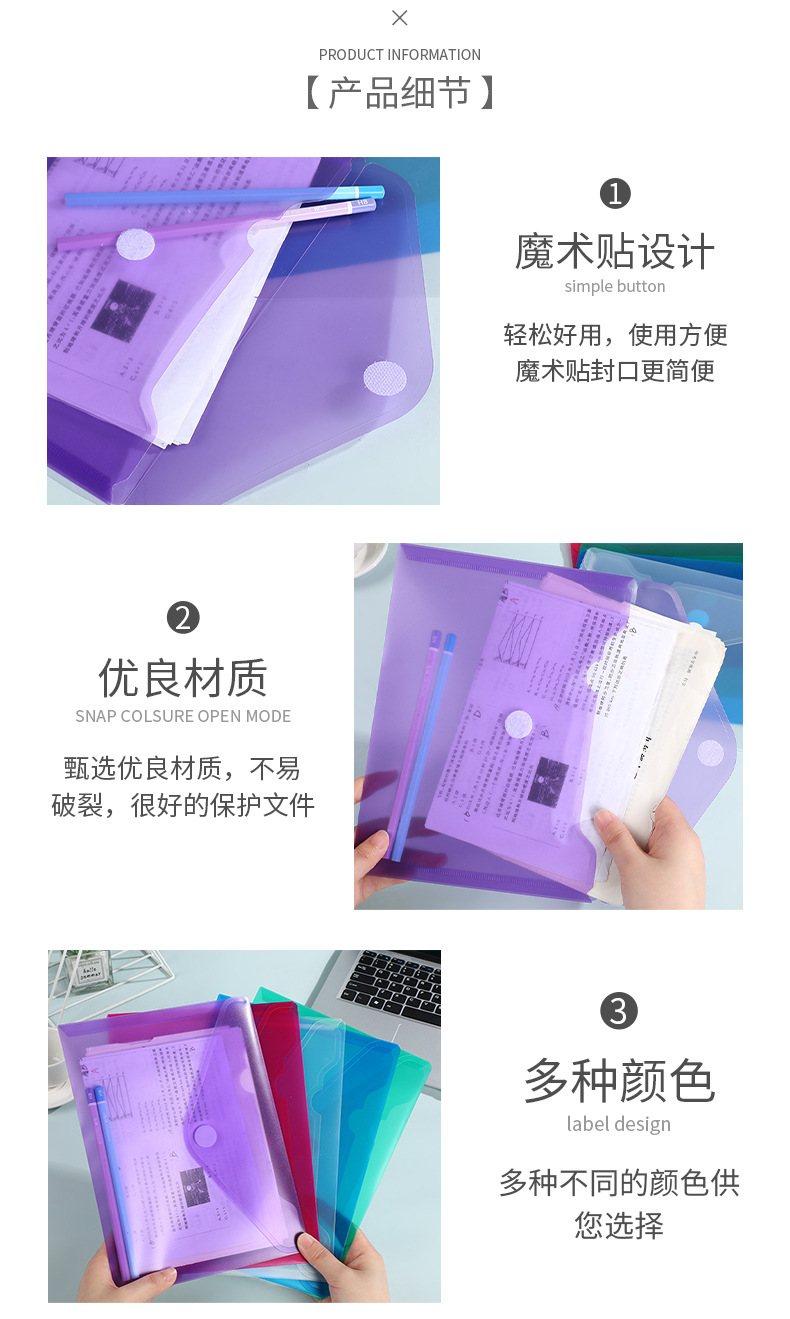 新款pp文件袋 横款魔术贴文件夹单格大容量资料袋 试卷表格档案袋
