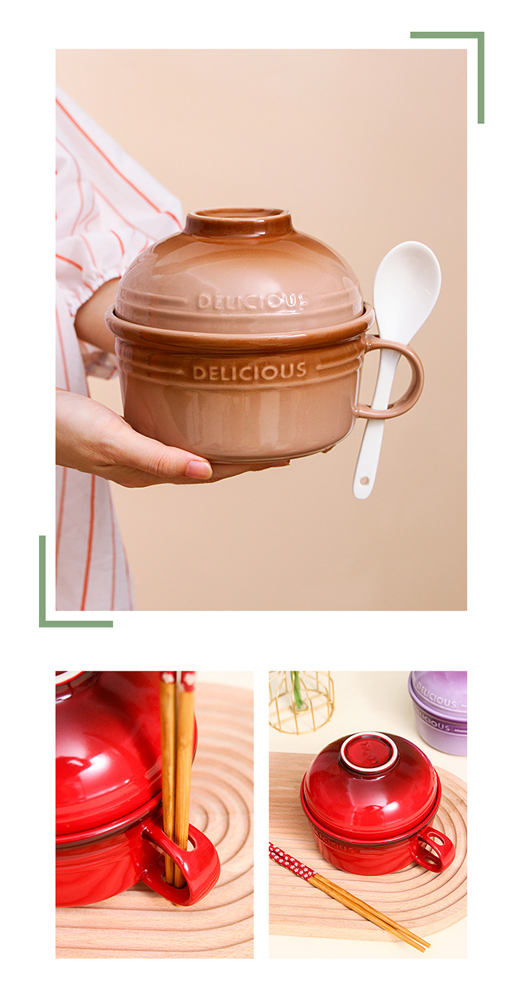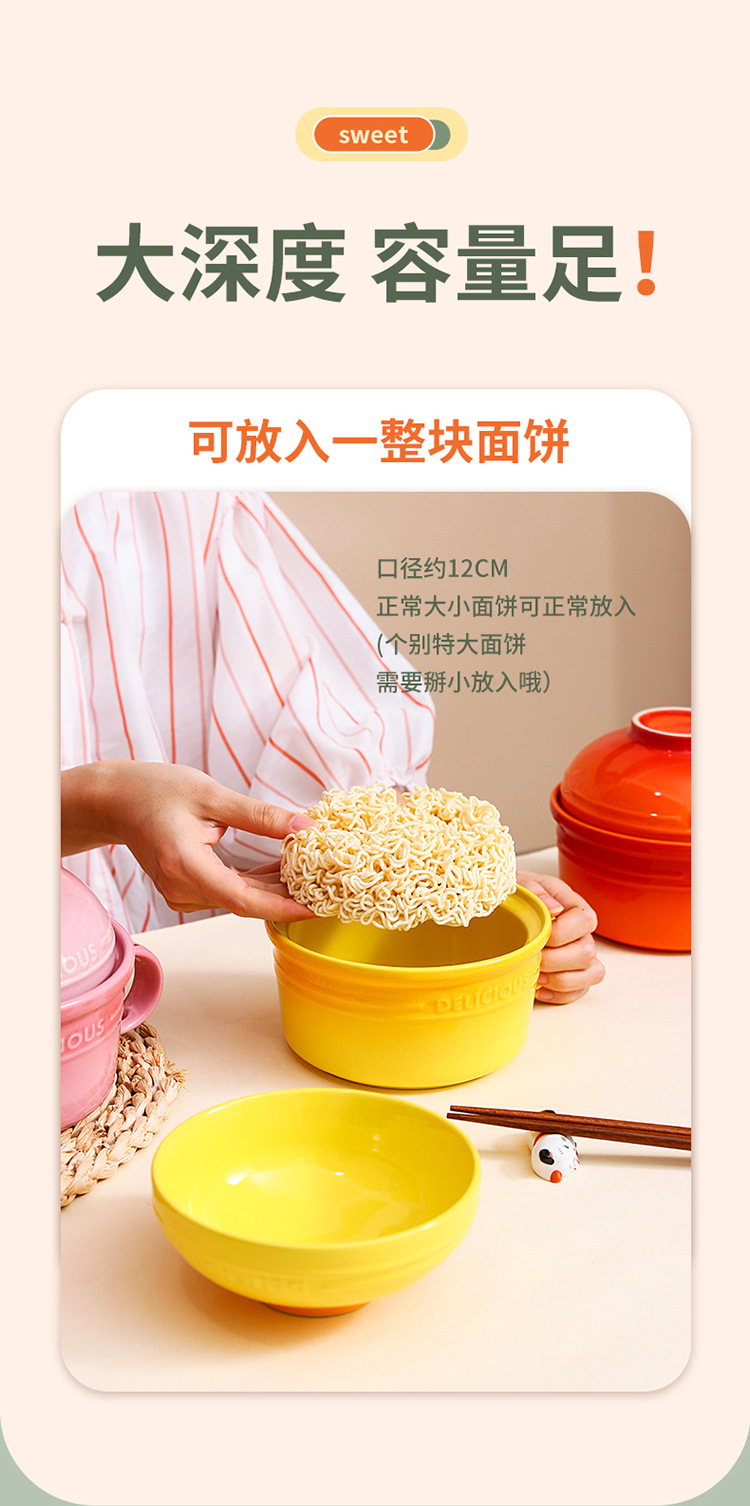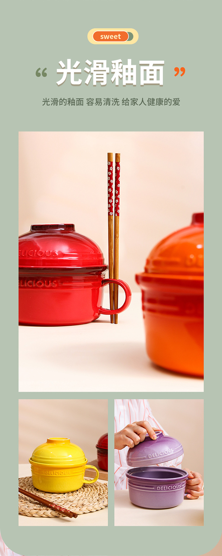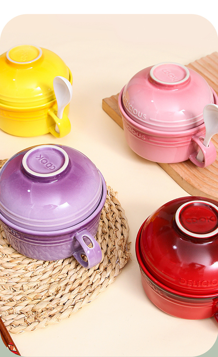 陶瓷泡面碗炫彩创意渐变带盖勺把手碗学生宿舍家用饭盒便当大号碗