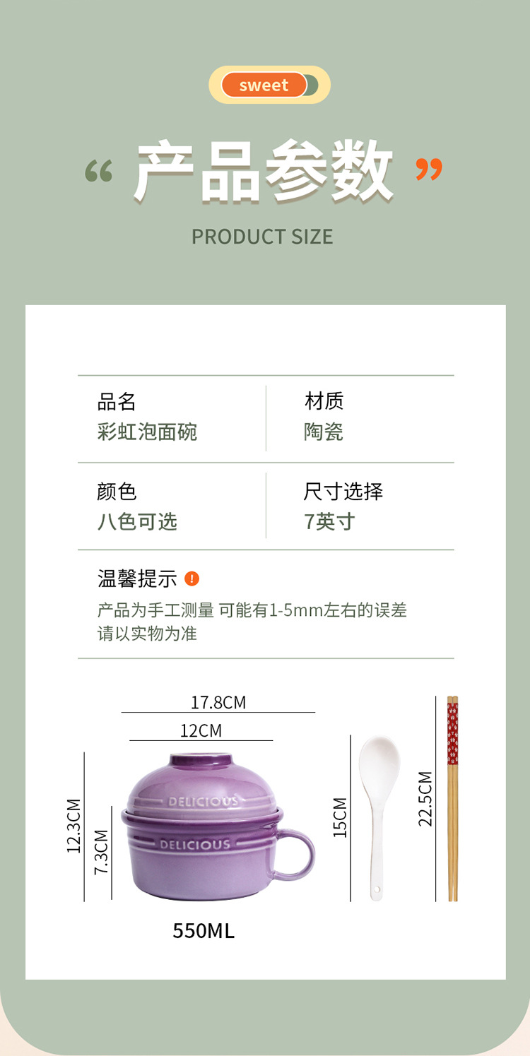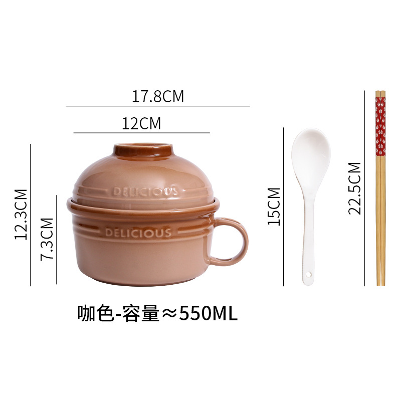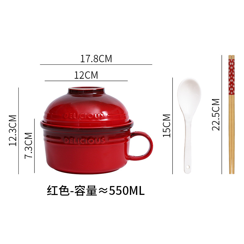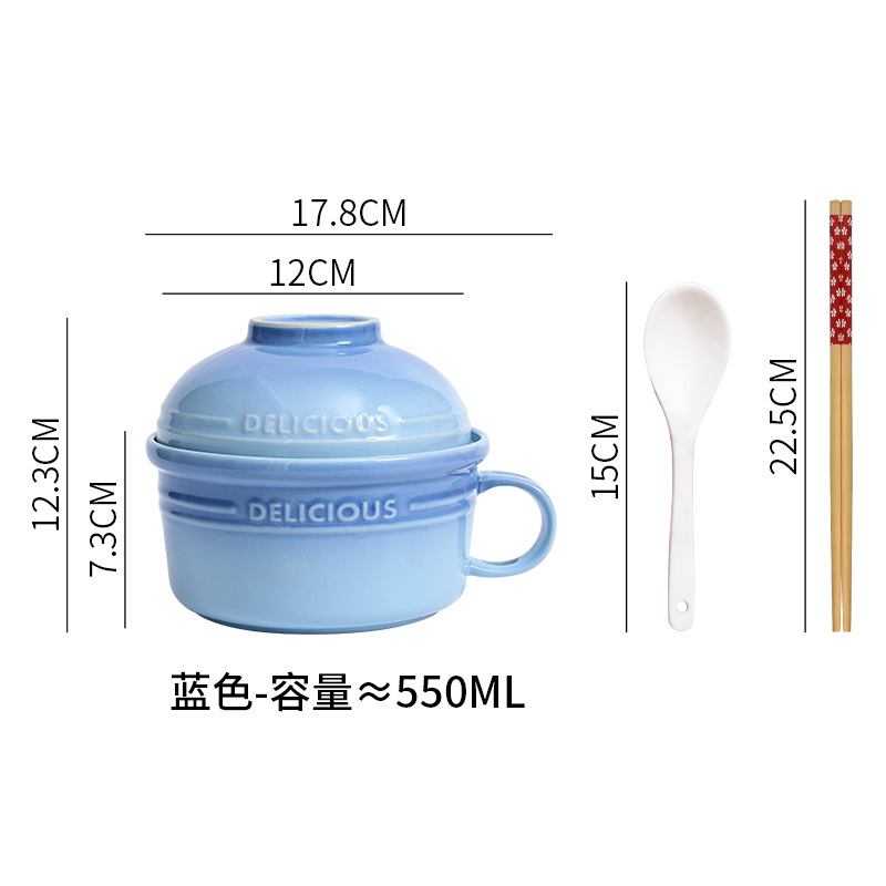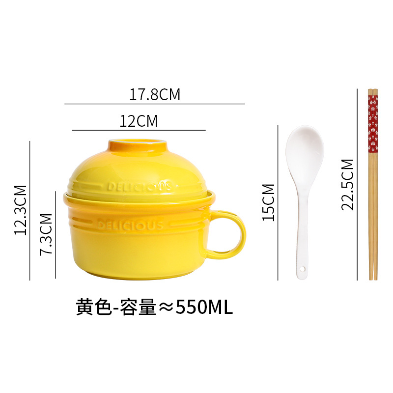 陶瓷泡面碗炫彩创意渐变带盖勺把手碗学生宿舍家用饭盒便当大号碗
