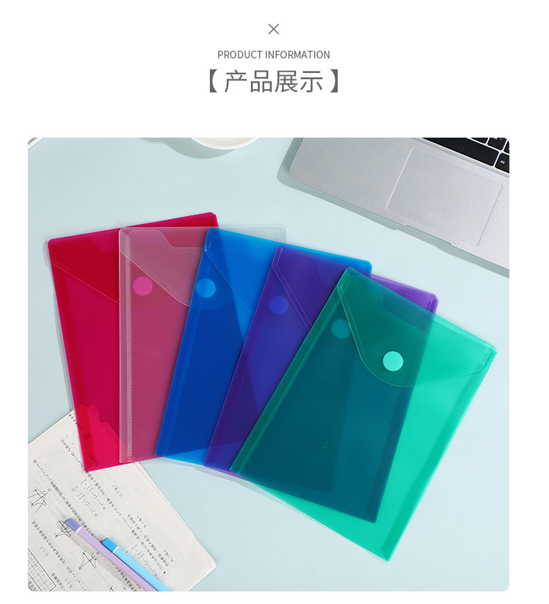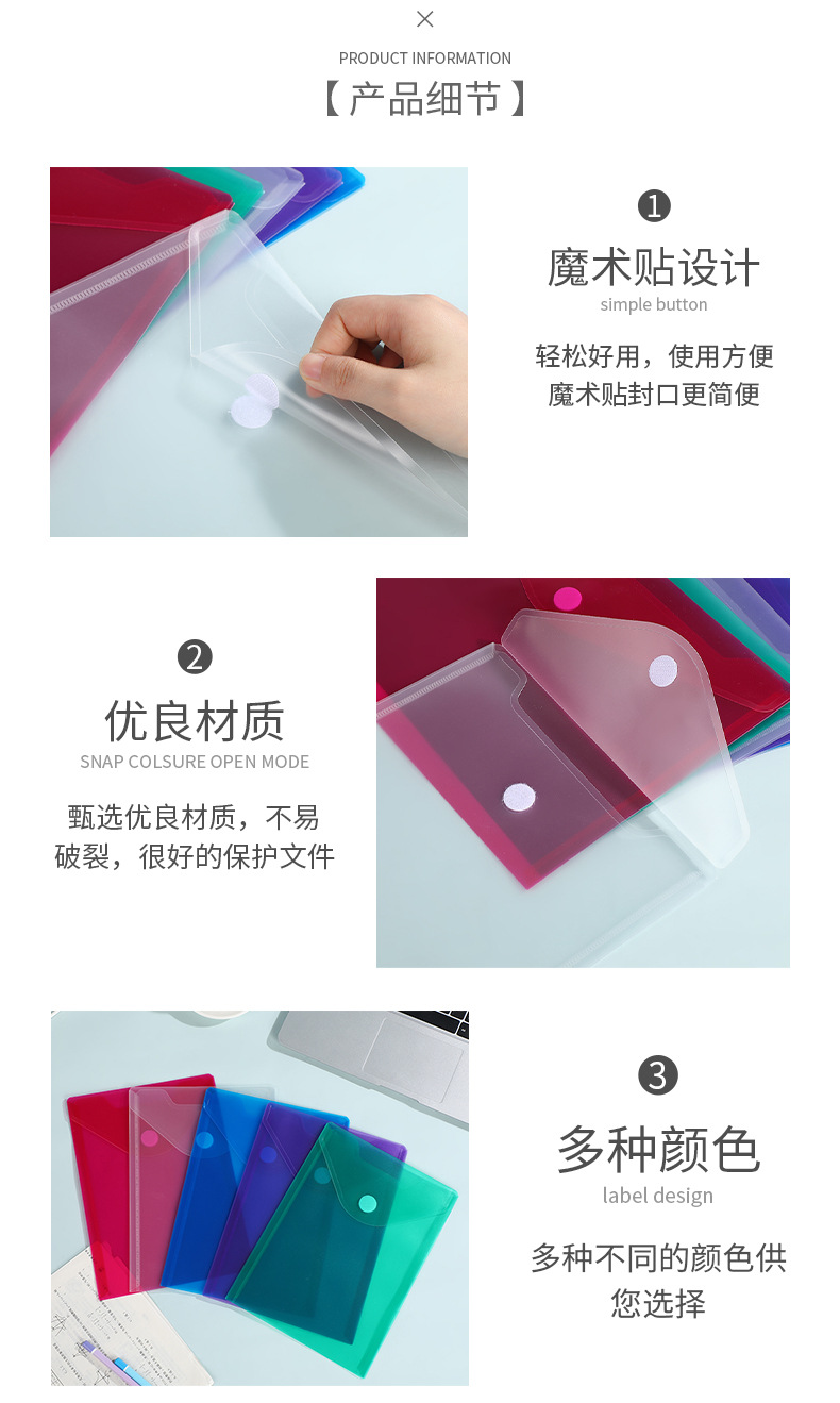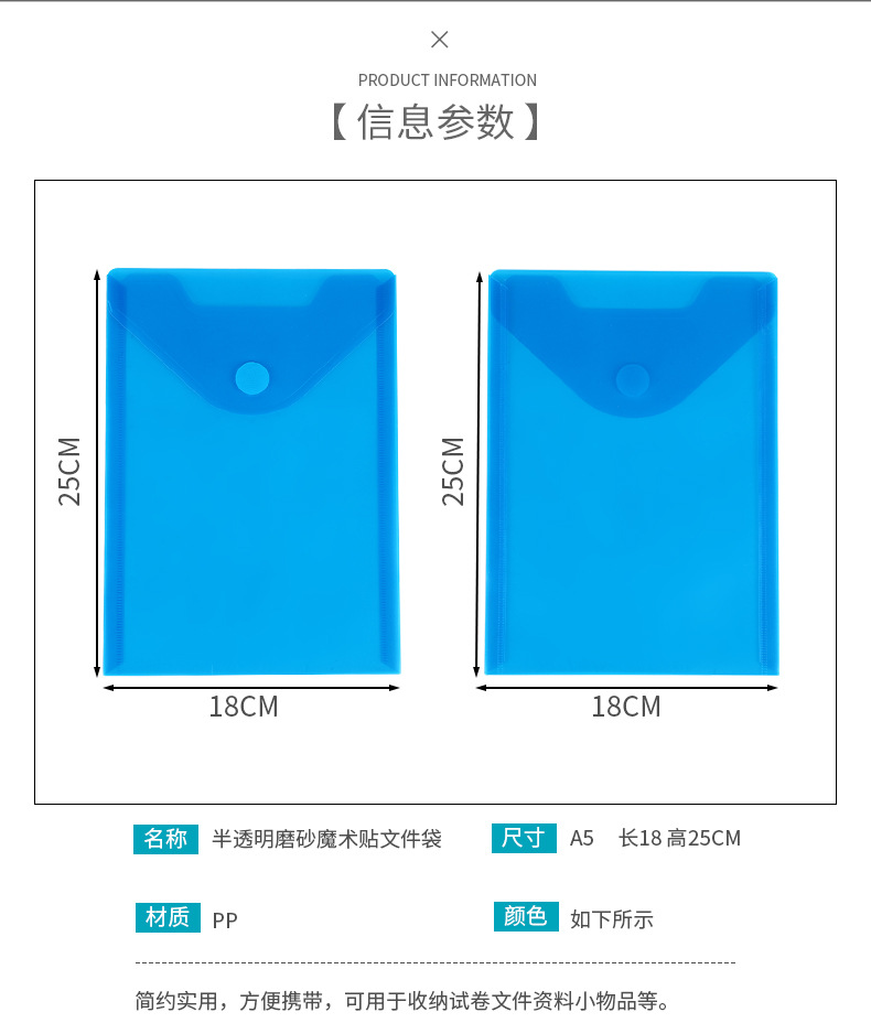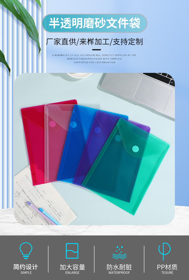 透明磨砂文件袋 魔术贴竖款学生资料袋试卷表格收纳袋办公档案袋