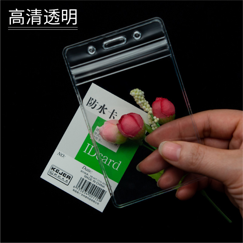 源头厂家科记软质防水卡套批发 双面透明员工工作证 带封条工作证