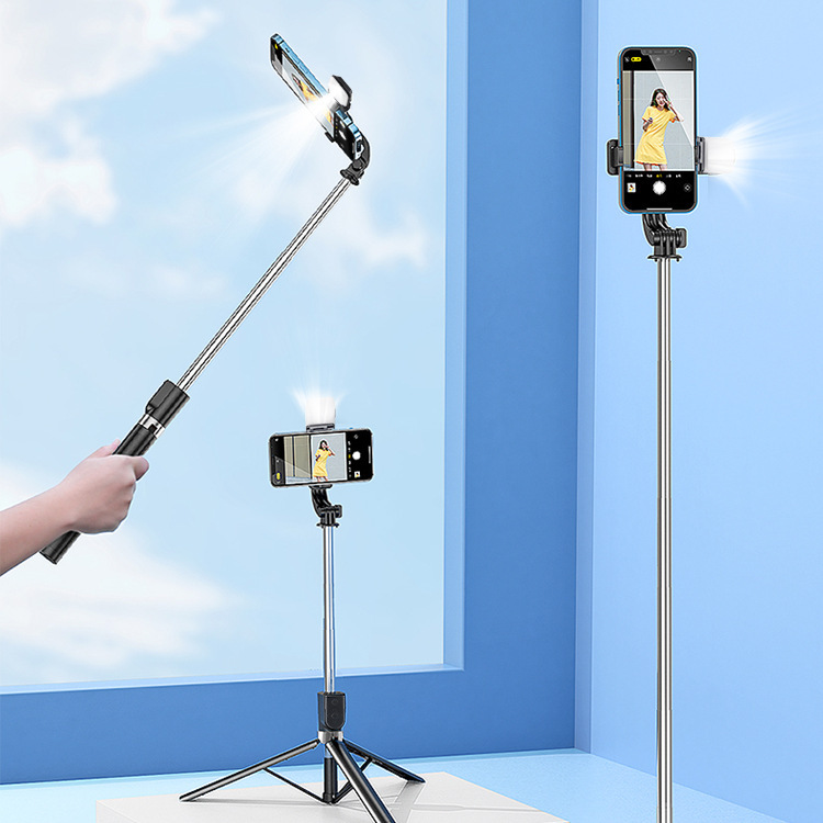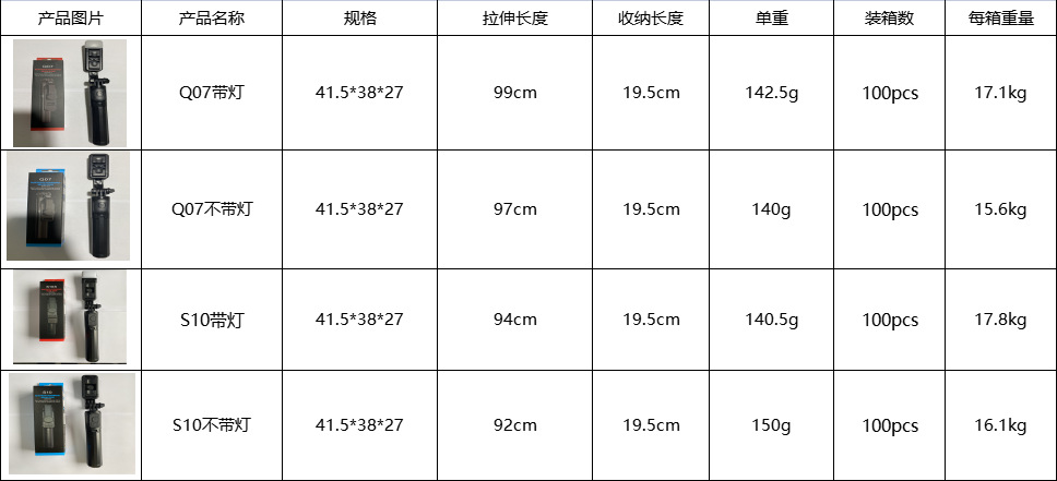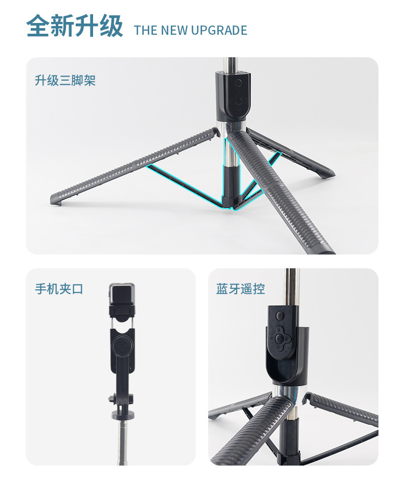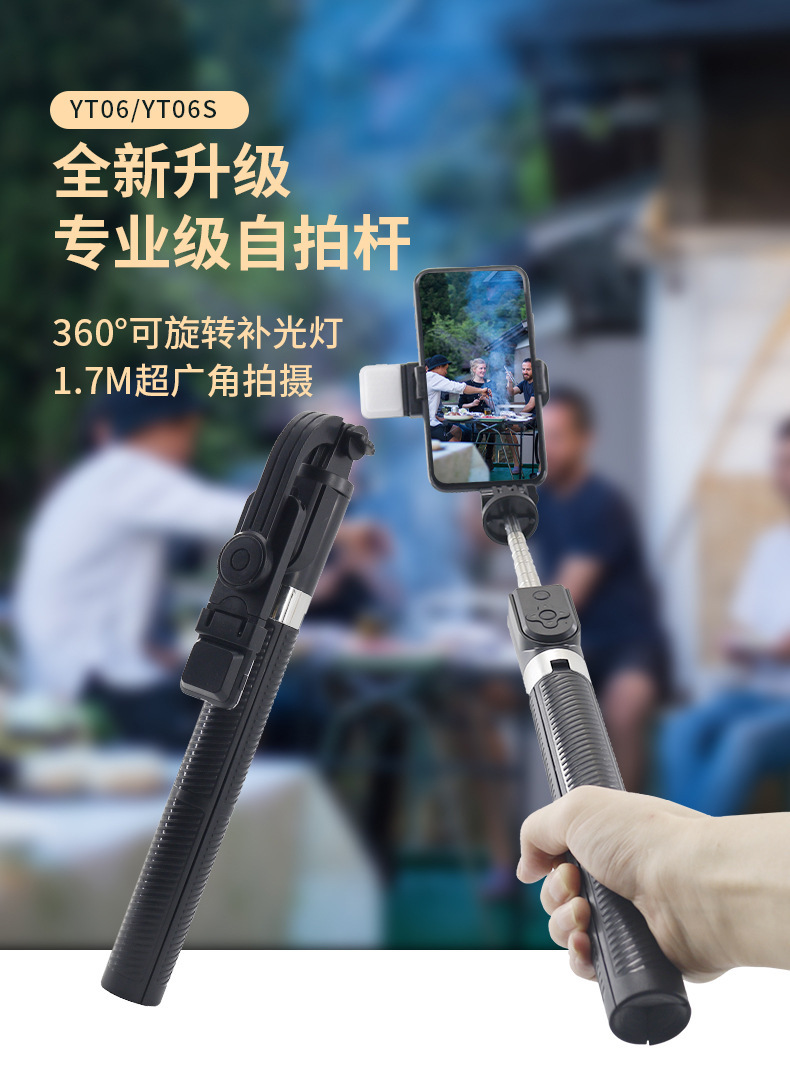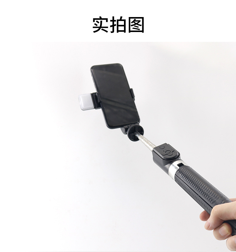S10手机蓝牙自拍杆Q07伸缩杆 补光灯一体落地三脚架 便携直播支架