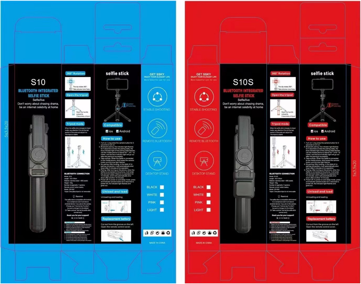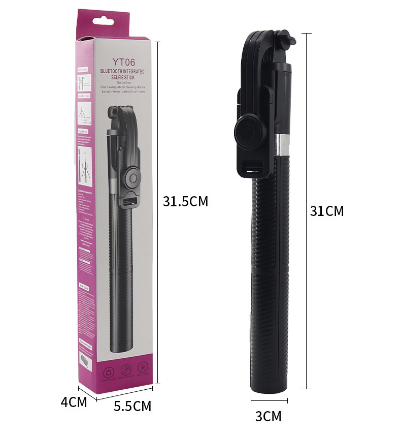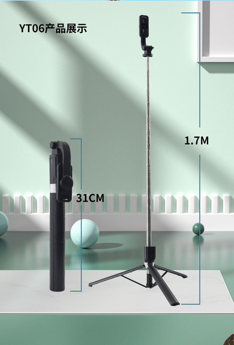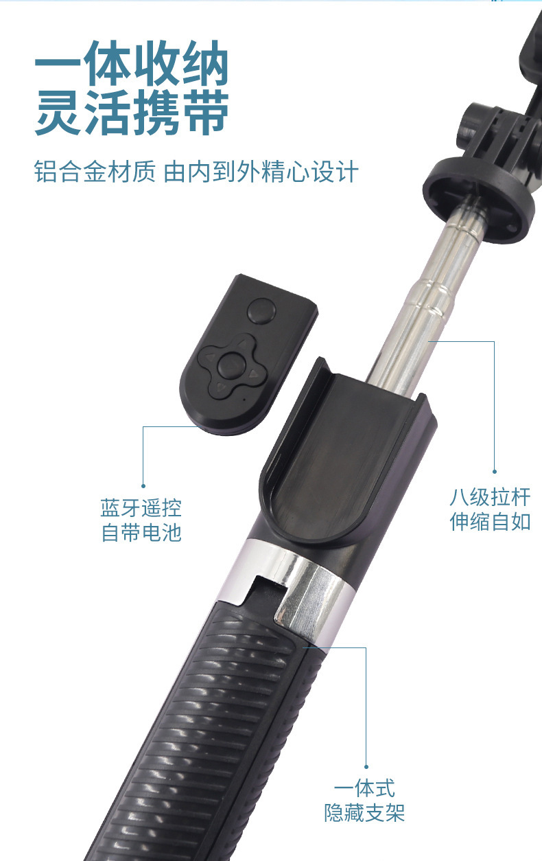 S10手机蓝牙自拍杆Q07伸缩杆 补光灯一体落地三脚架 便携直播支架