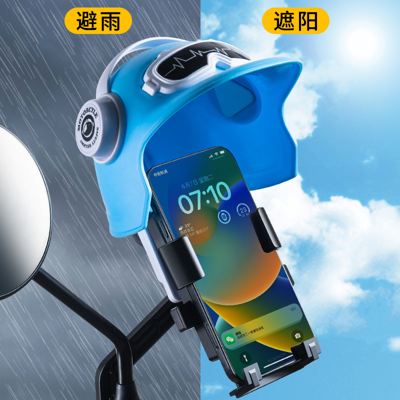 小头盔外卖骑手摩托车手机支架电动车自行车防水遮阳罩导航手机架