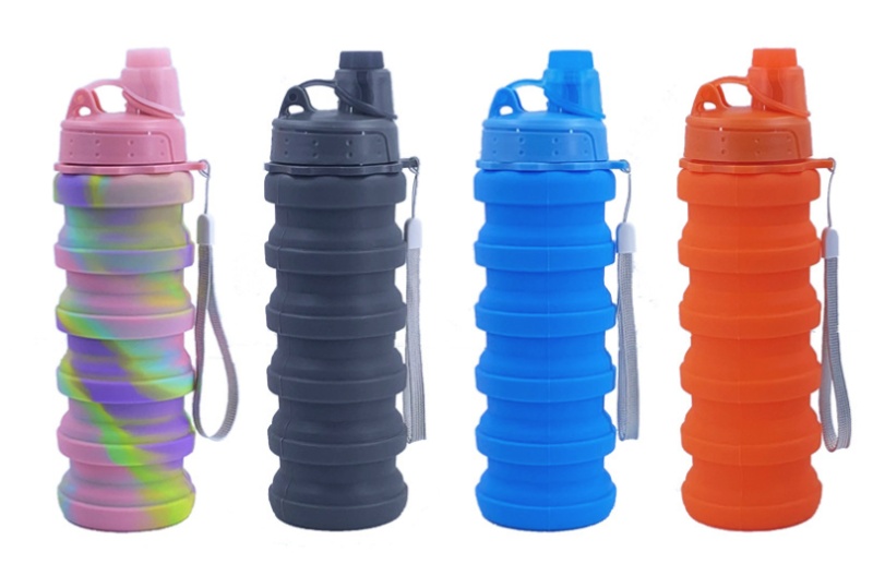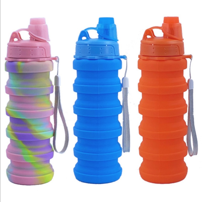 硅胶运动水壶手腕提手可折叠水杯 旅行便携硅胶水瓶迷彩硅胶杯子