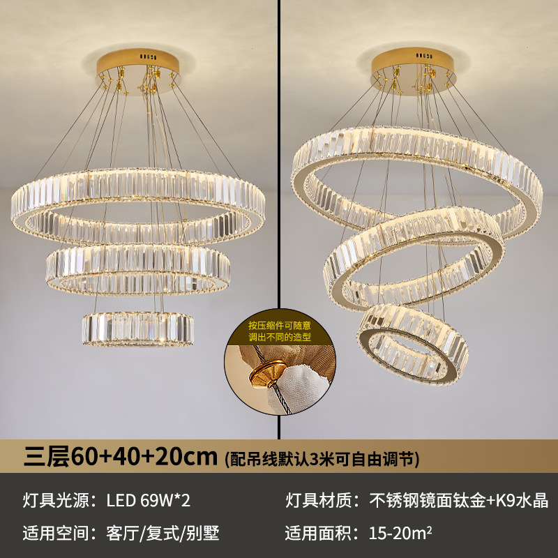外贸专供轻奢吊灯客厅灯水晶灯简约全屋别墅会所灯不锈钢灯饰