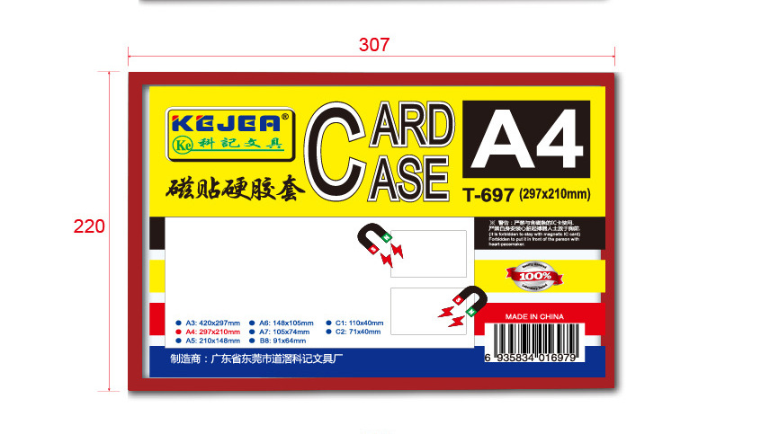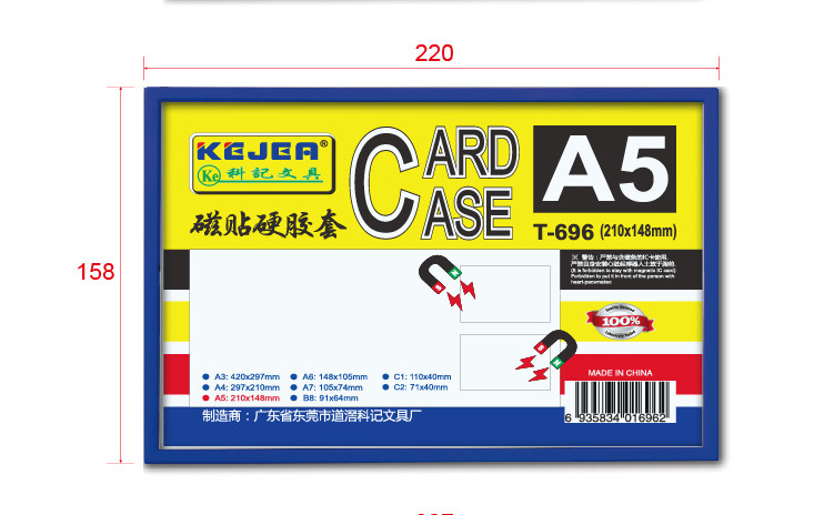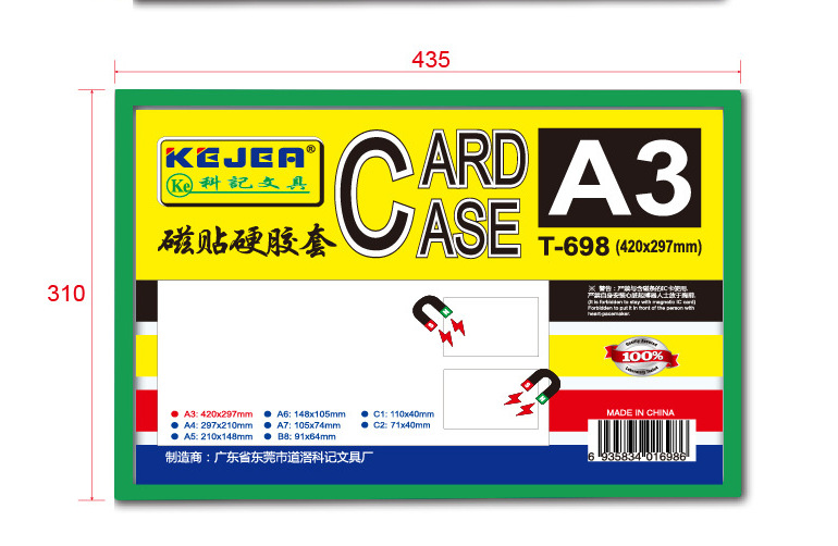 源头厂家科记多规格磁贴硬胶套批发A3磁力文件保护套带磁性展示板