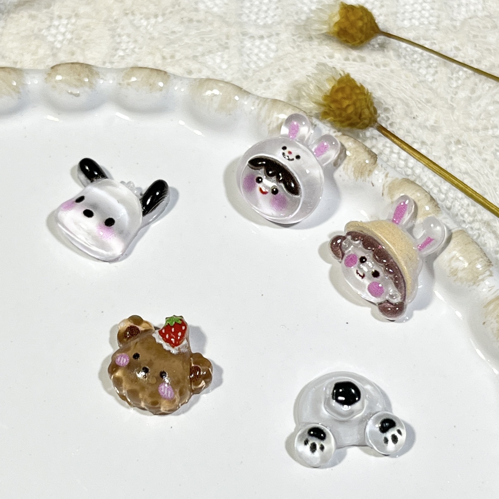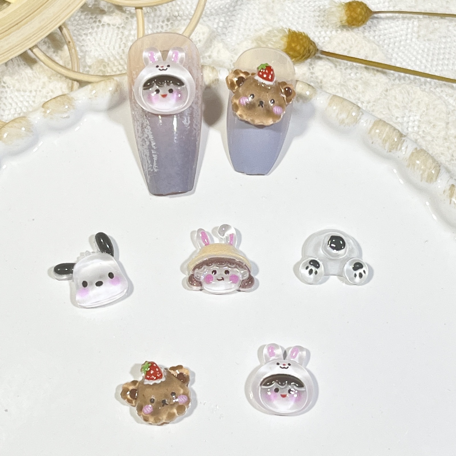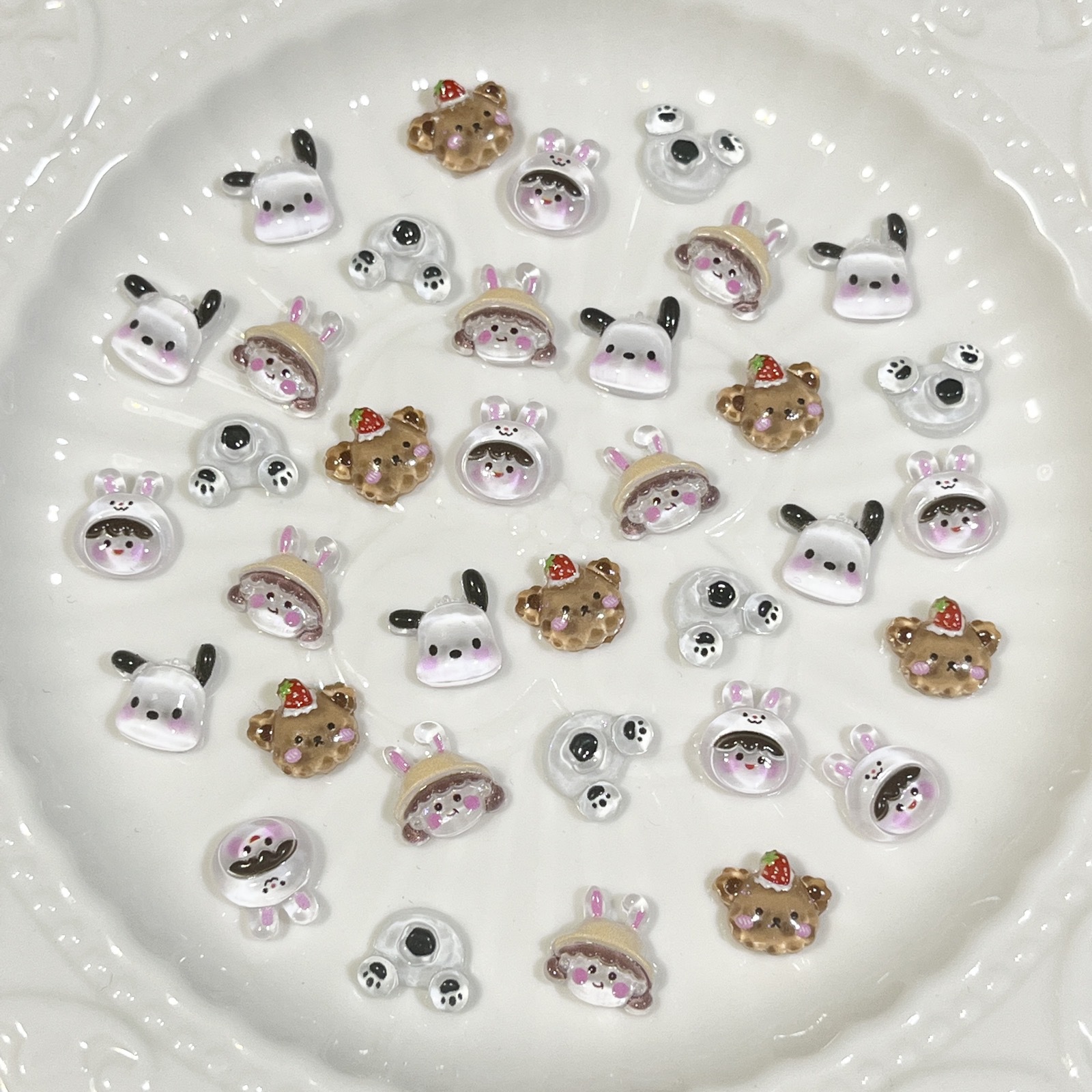 跨境卡通美甲饰品混装三丽鸥迷你可爱帕恰狗草莓熊美乐蒂树脂配件