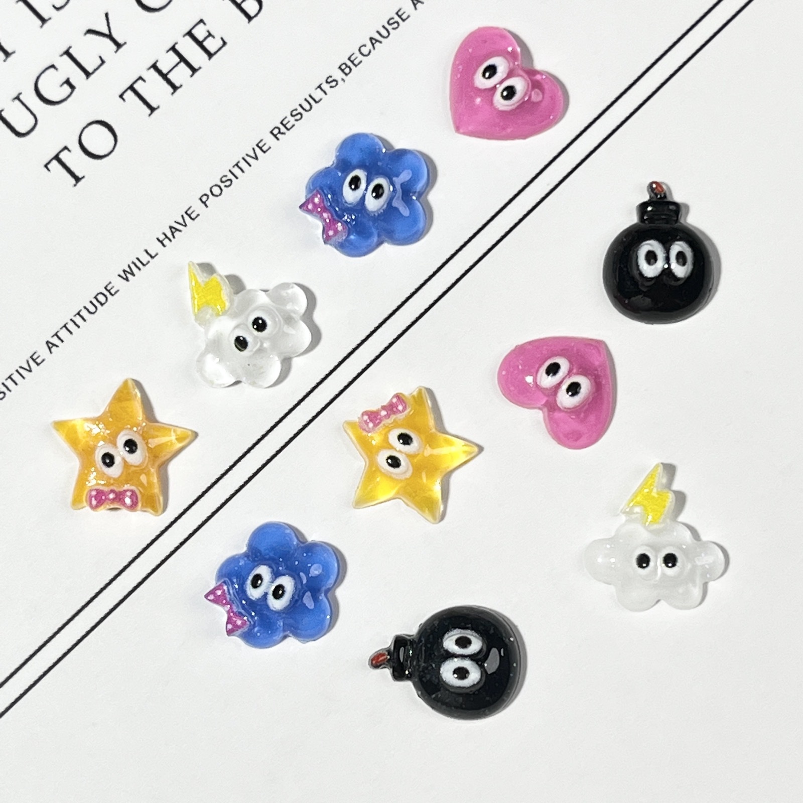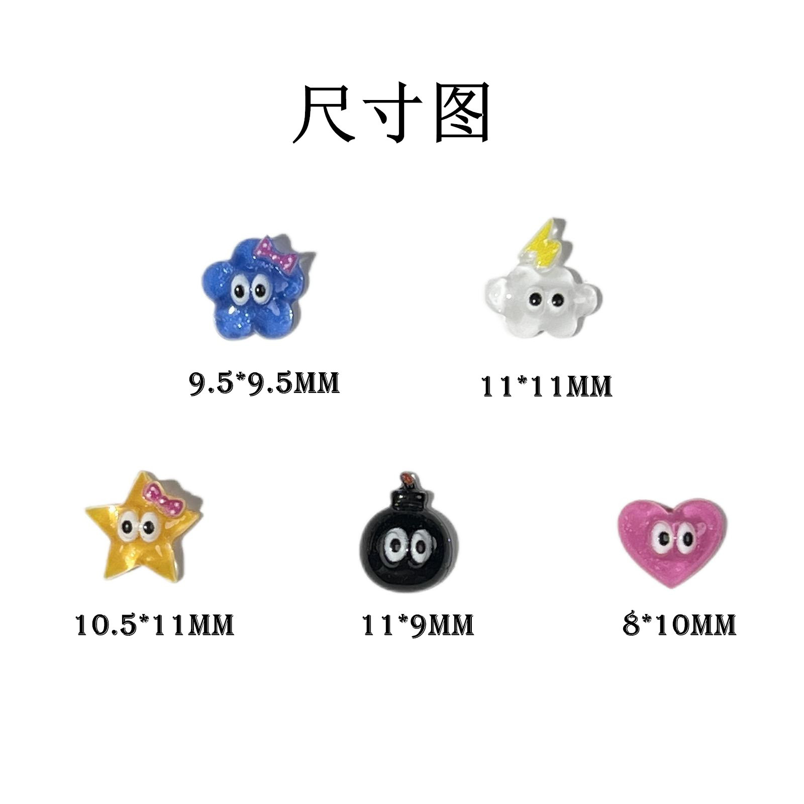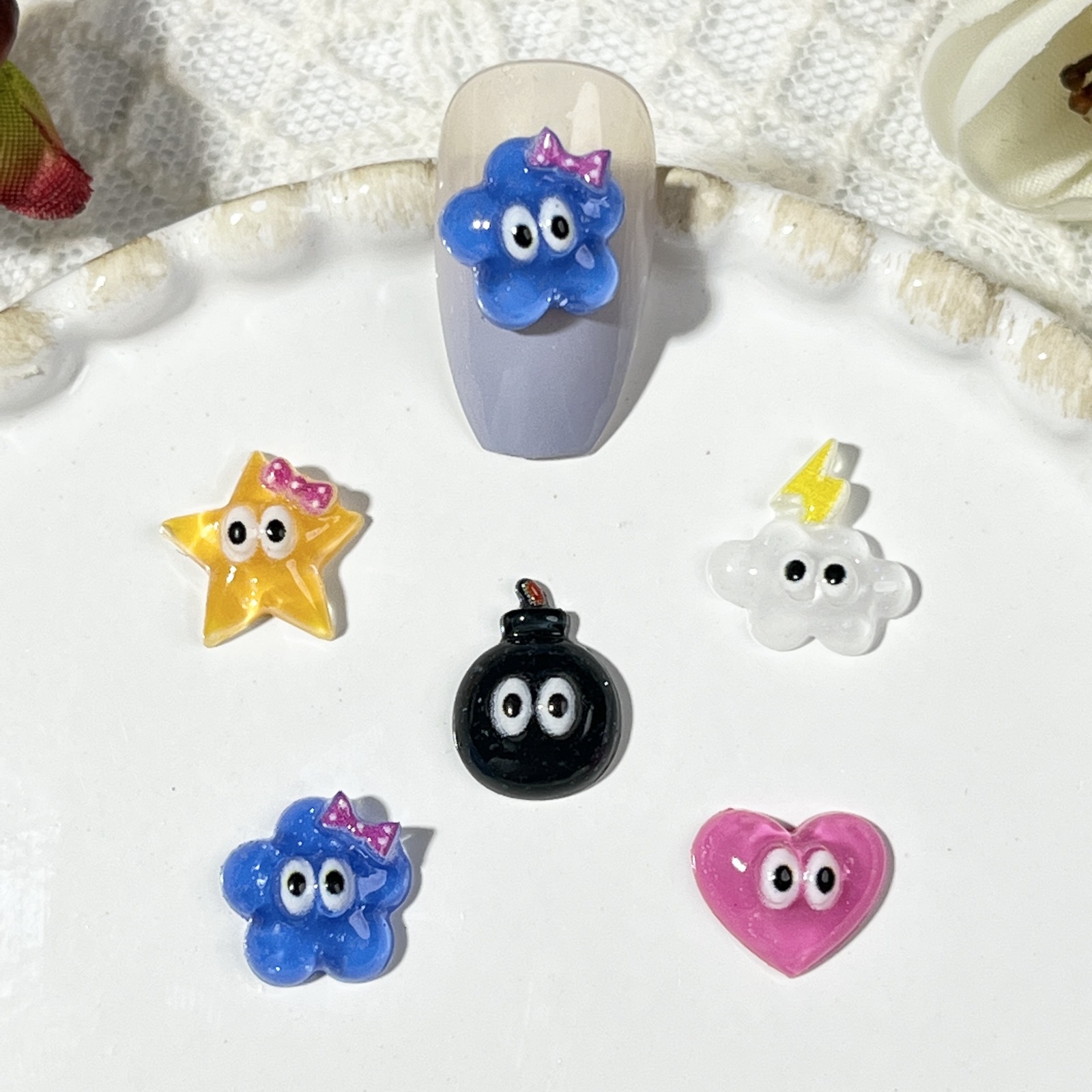美甲卡通饰品钻ins果冻小不点可爱小眼睛云朵五角星爱心指甲配件