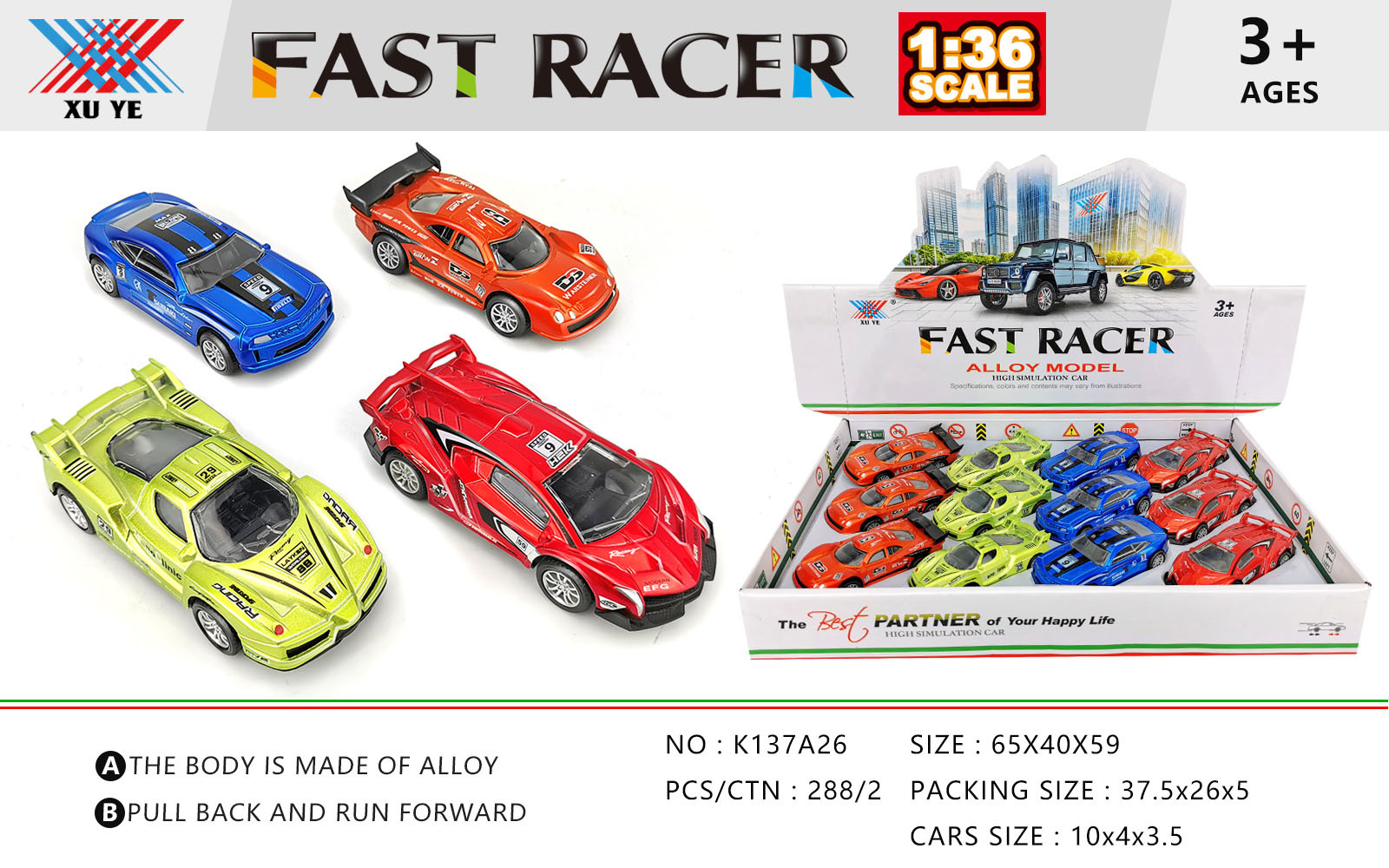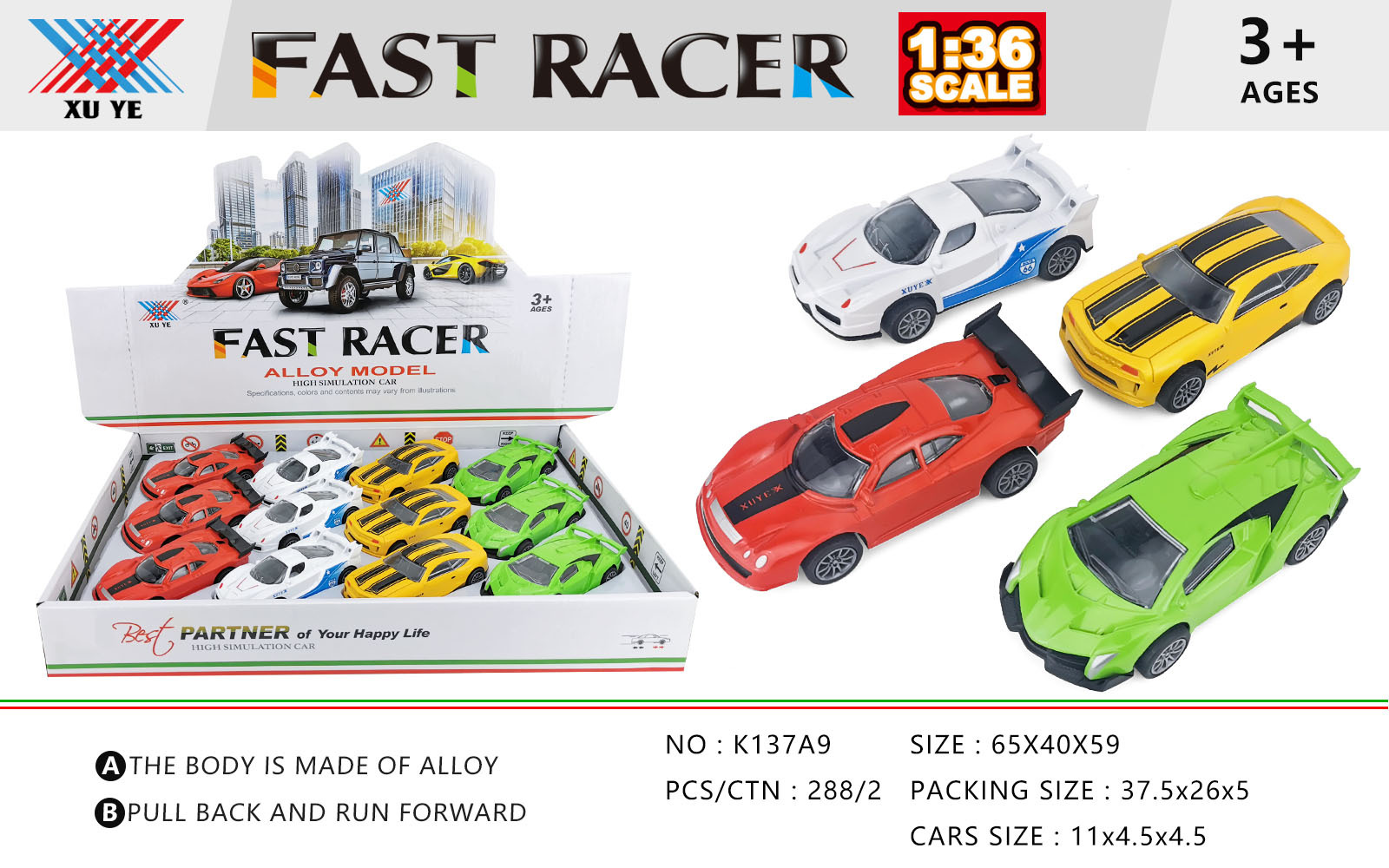 1:36合金小汽车玩具车男孩仿真回力滑行赛车模型套装合金玩具