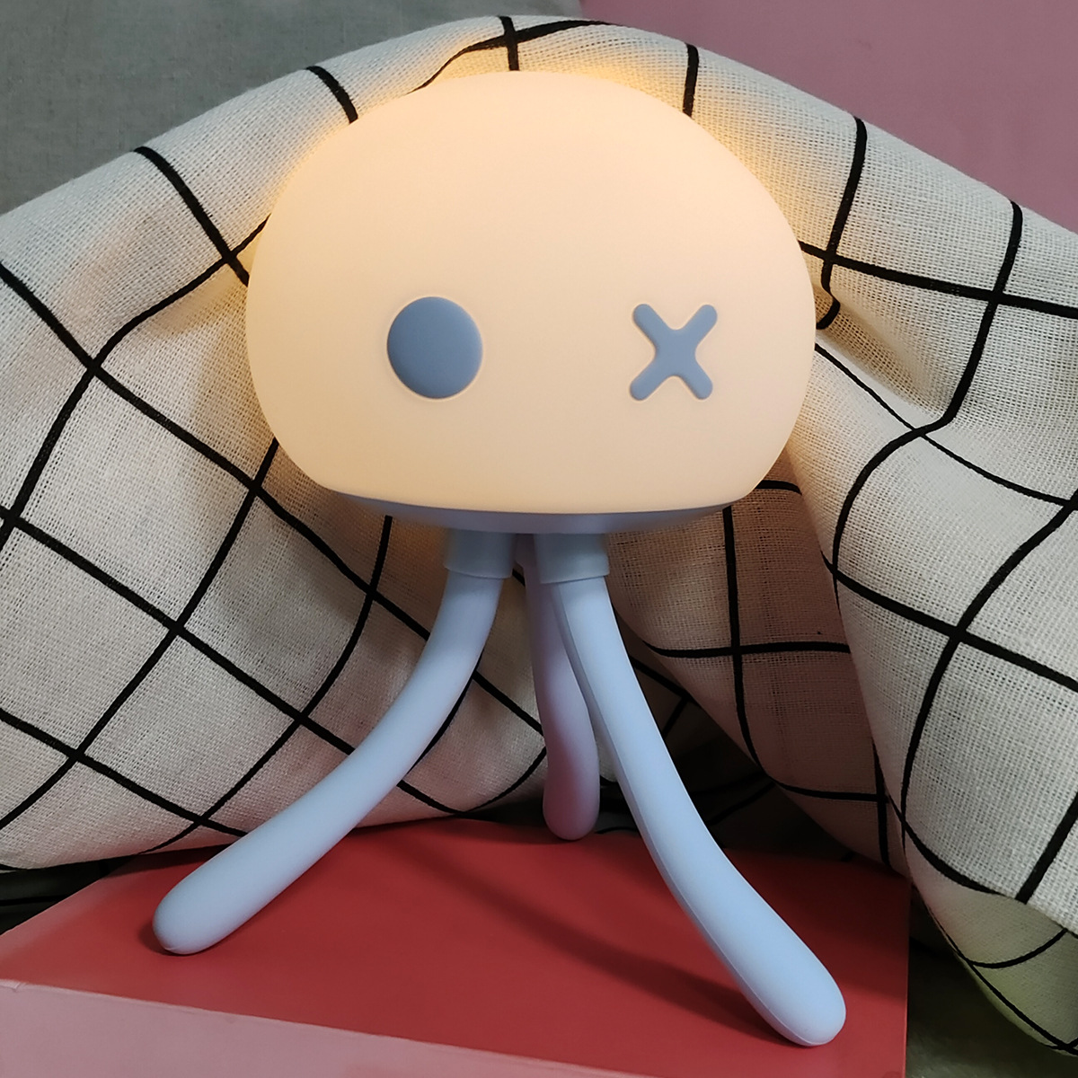 智能水母小夜灯LED充电可爱迷你卧室婴儿睡眠喂奶氛围硅胶拍拍灯