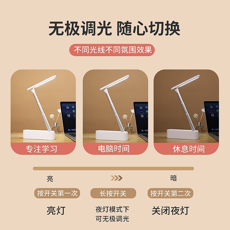 创意折叠伸缩几何多功能台灯阅读USB小夜灯LED护眼无极调光床头灯