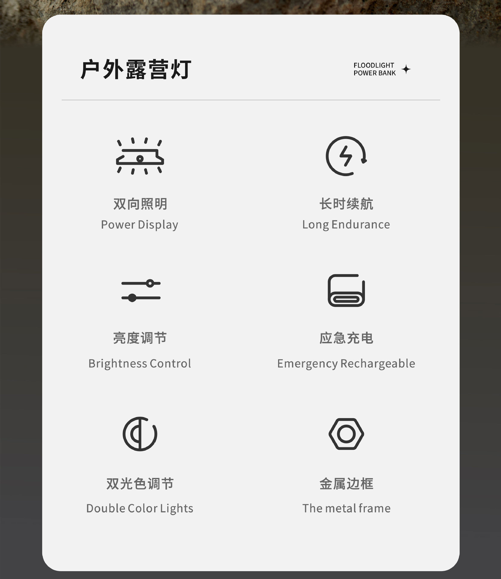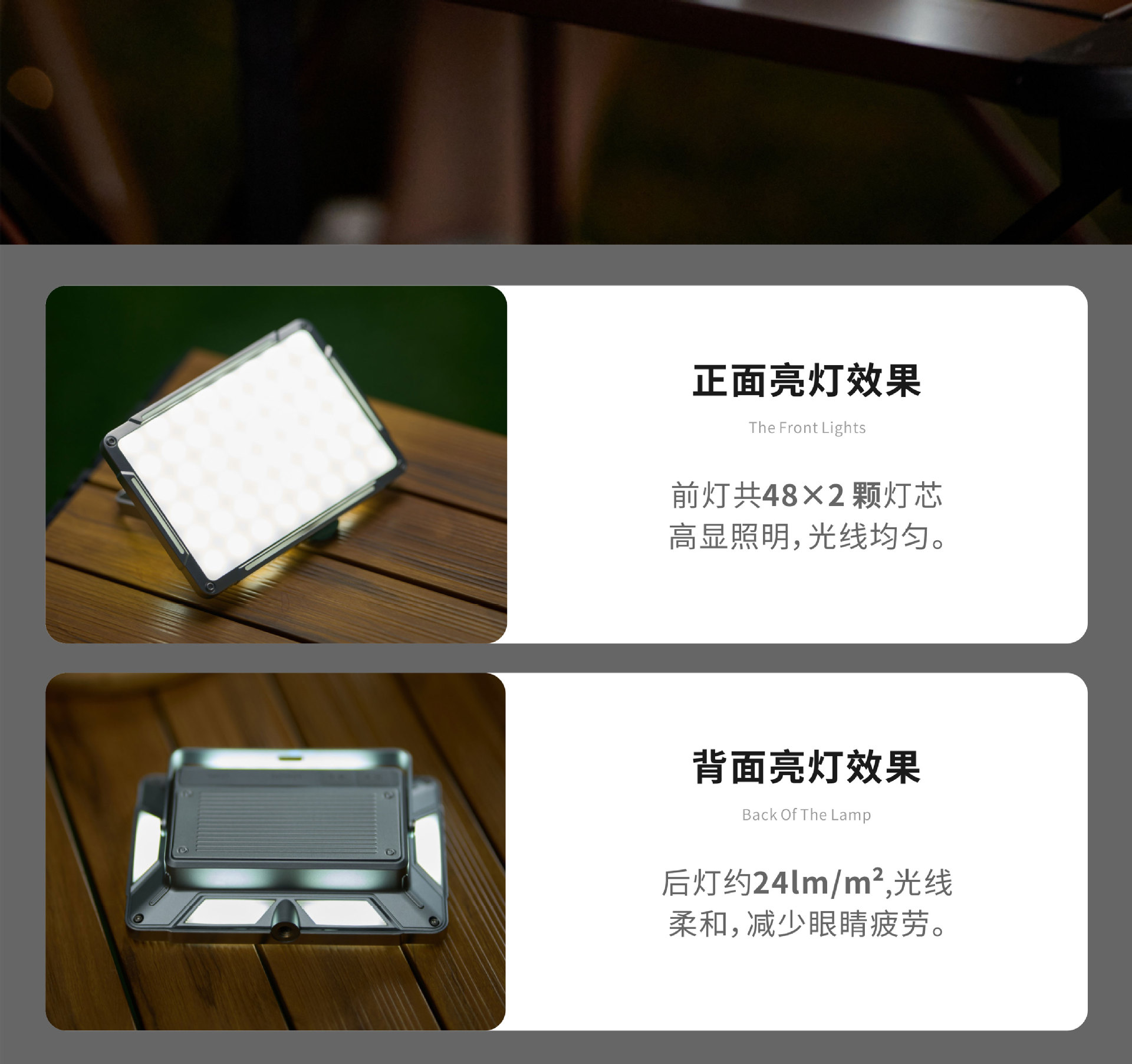 新款户外充电式手提露营灯方形双向照明长续航野营应急照明LED灯