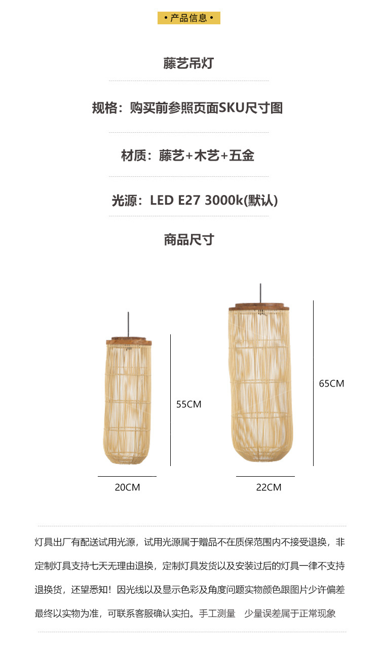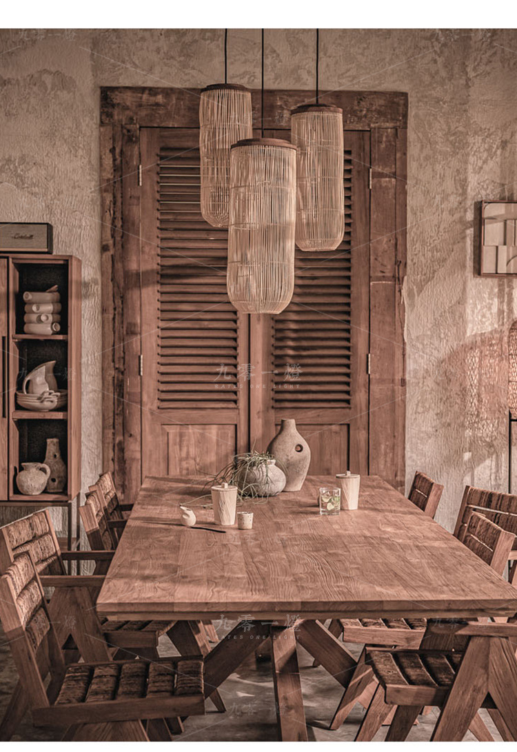 外贸专供日式侘寂风藤编吊灯禅意茶室民宿饭店火锅店藤艺灯具