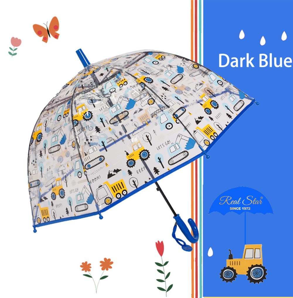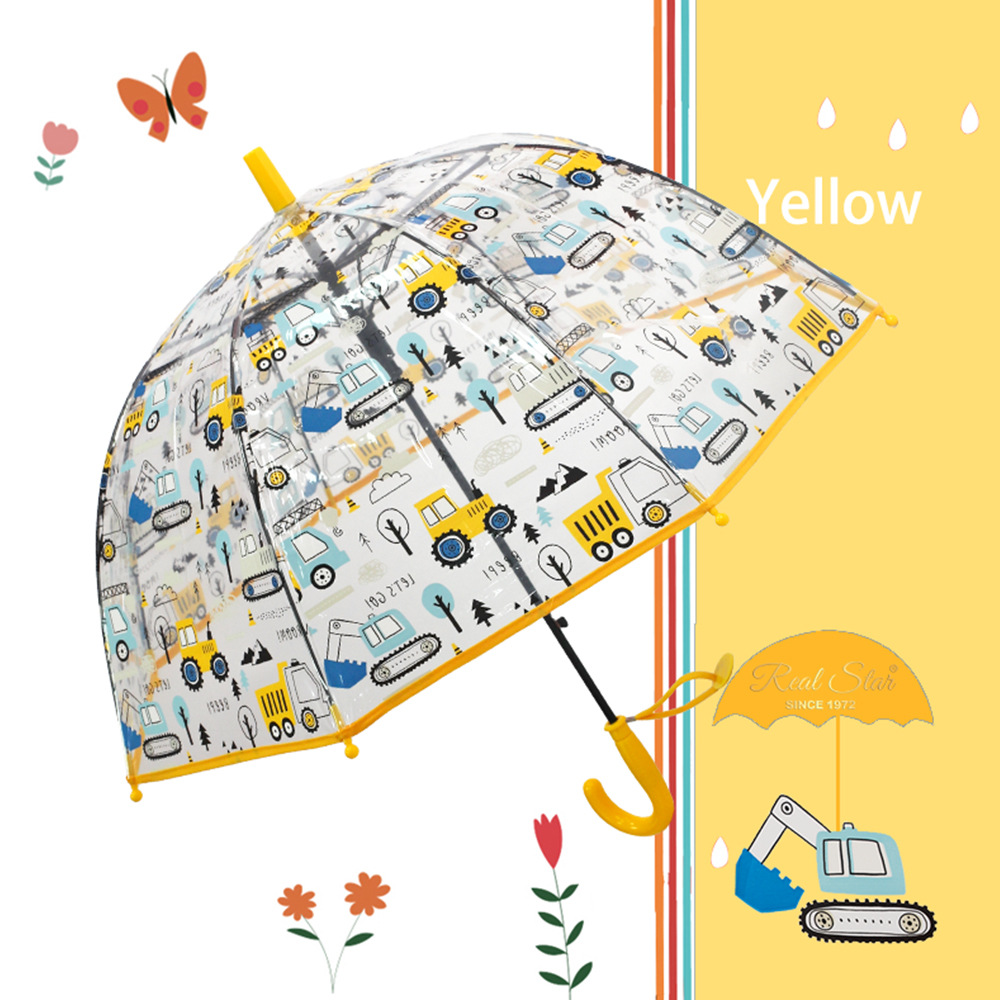 星宝伞036A新品儿童雨伞可爱卡通POE透明伞挖机推土机图案自动伞