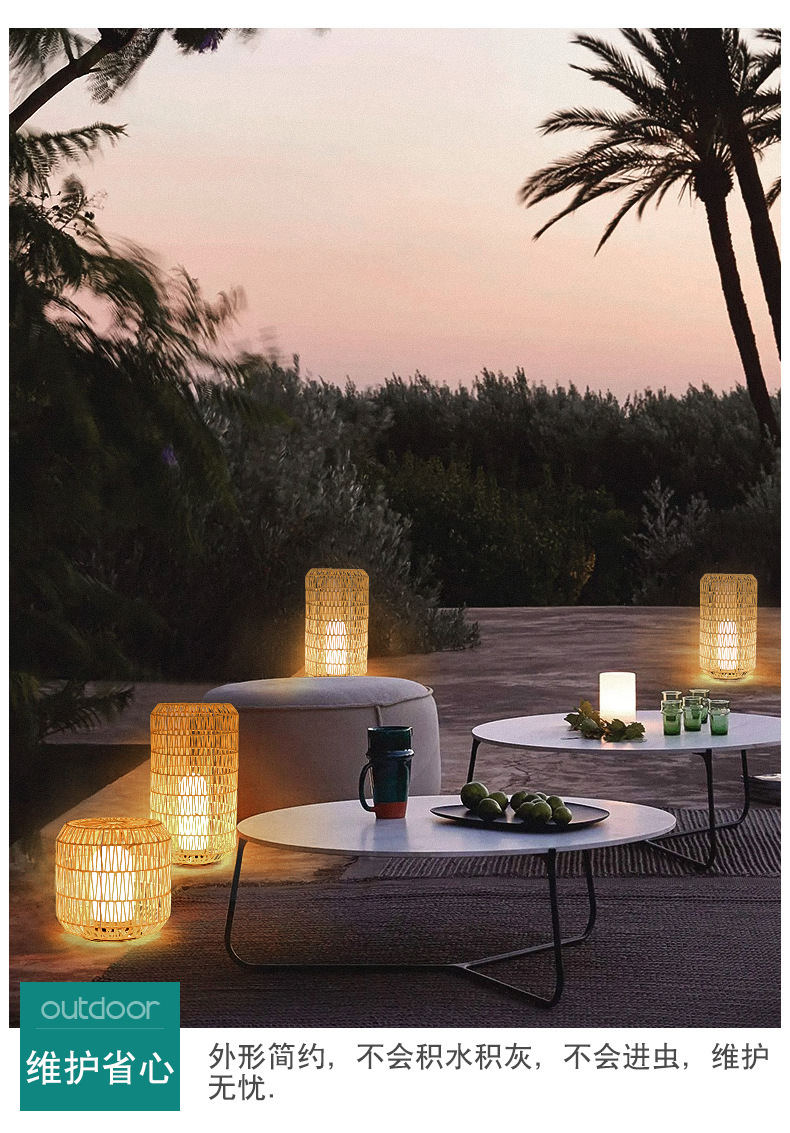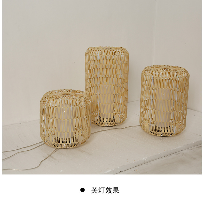 外贸专供新中式太阳能草坪灯户外别墅灯日式花园防水灯藤编落地灯