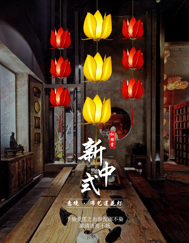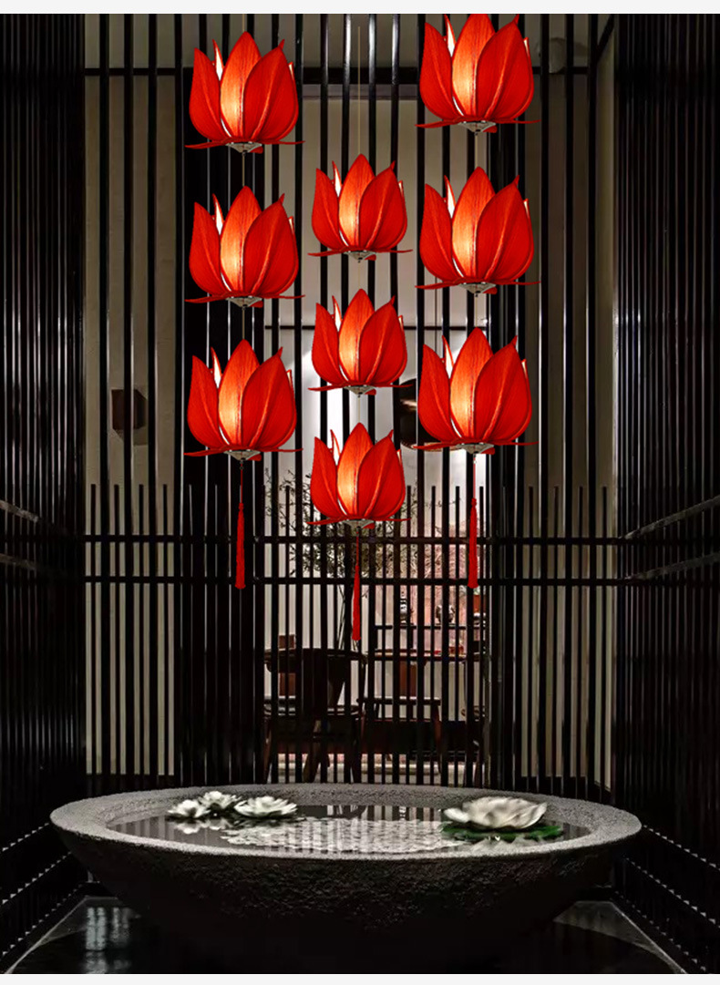 外贸专供中国风禅意莲花灯古典酒店大厅火锅店大堂佛堂门厅灯吊灯
