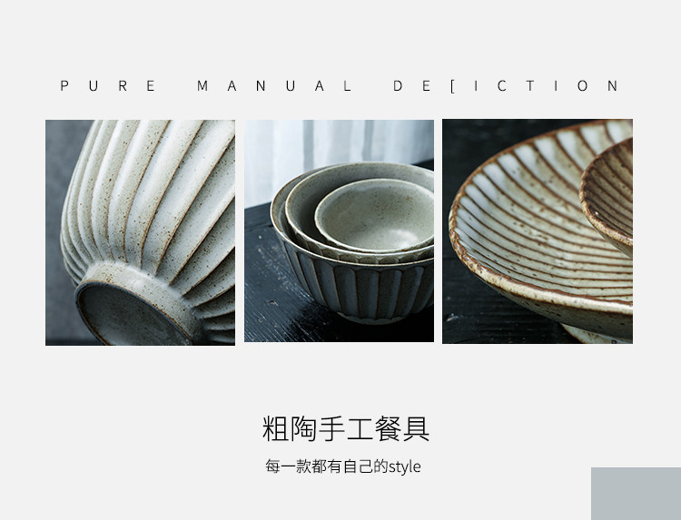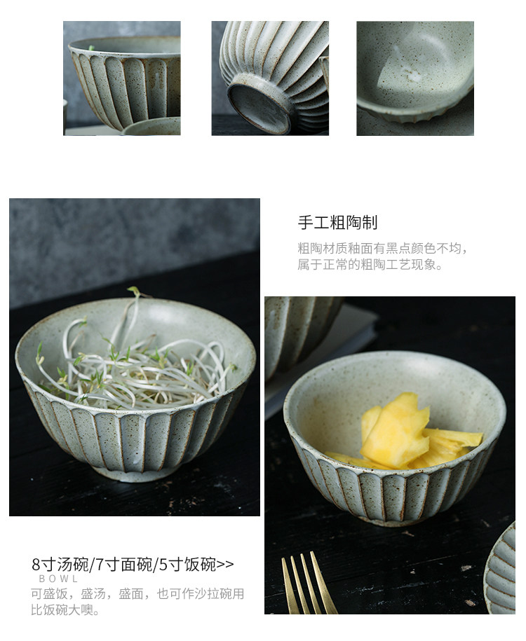 创意陶瓷日式古朴粗陶餐具复古碗复古斗笠碗家用餐厅特色大碗汤碗