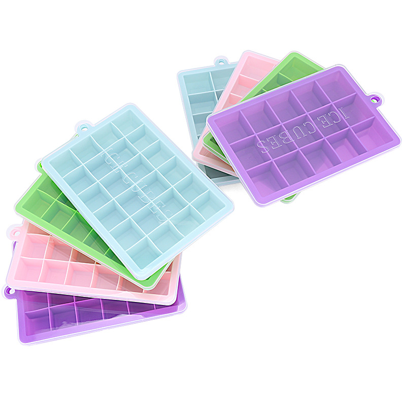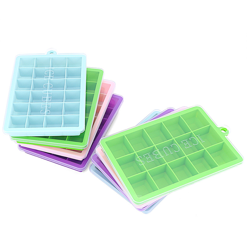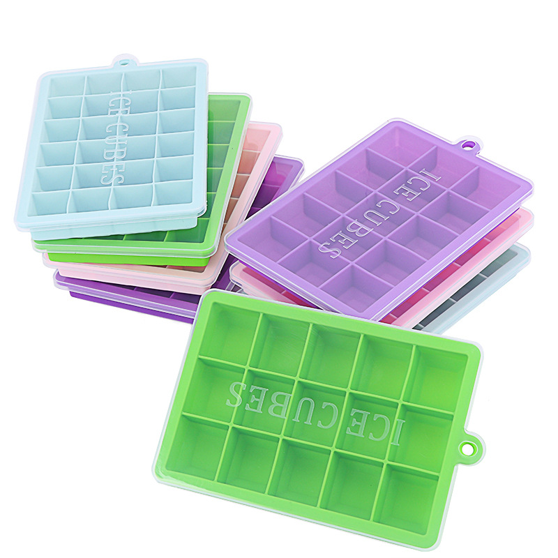 现货批发 15格带盖硅胶制冰盒DIY家用正方形冰块模具24格硅胶冰格