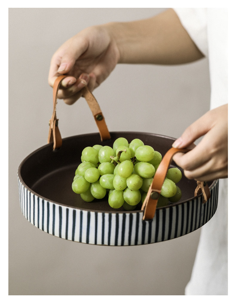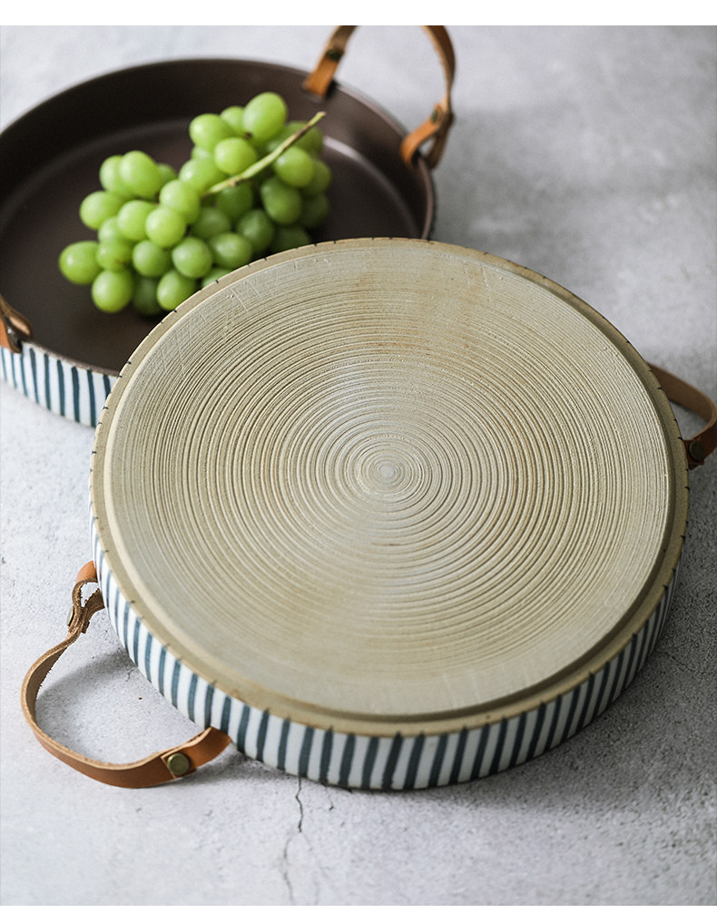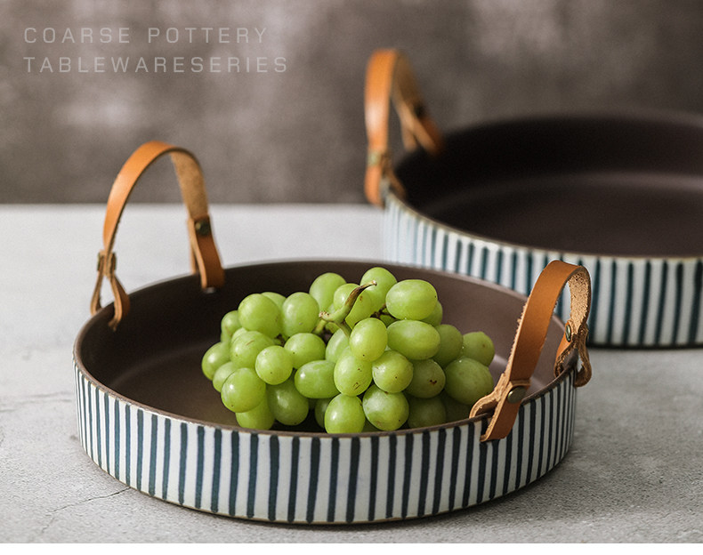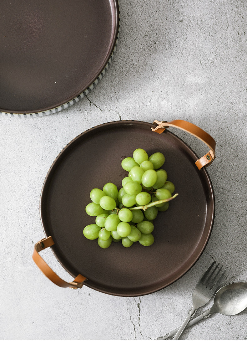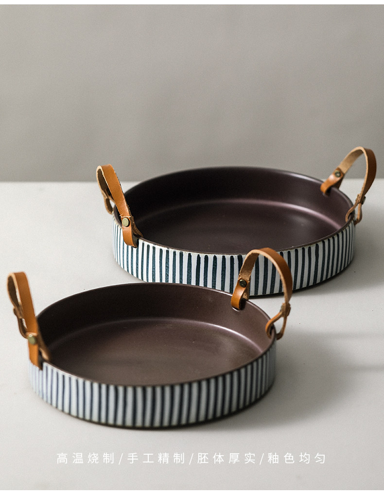 餐具手工牛皮陶瓷菜盘子家用创意西餐盘意面盘果盘餐具大创意茶盘