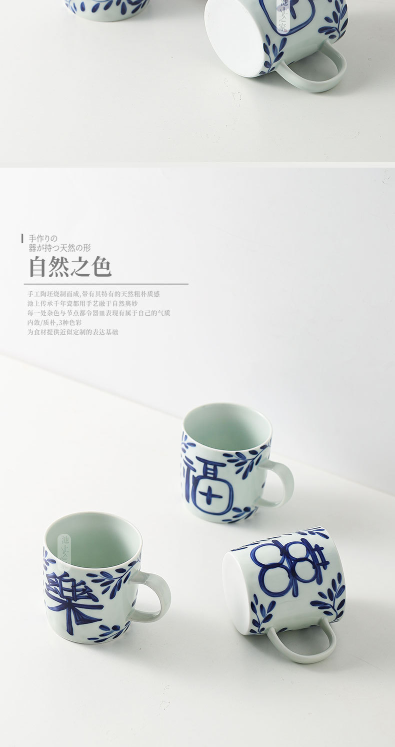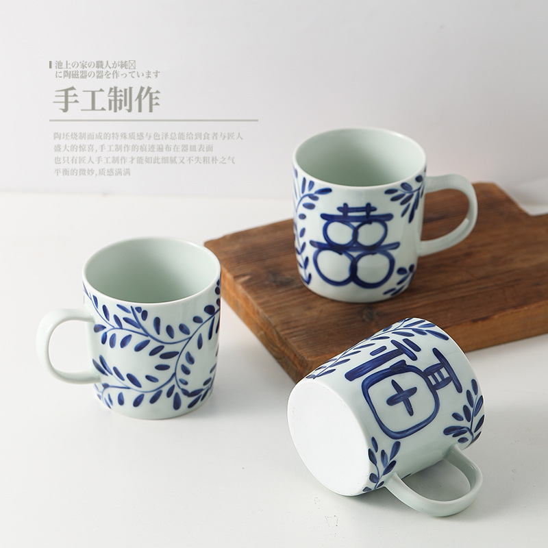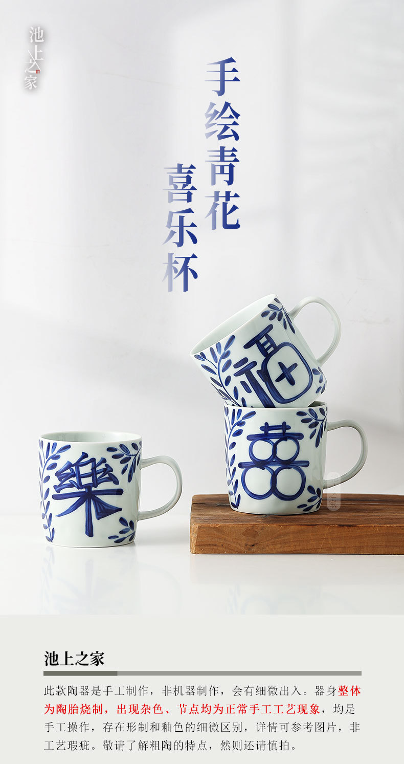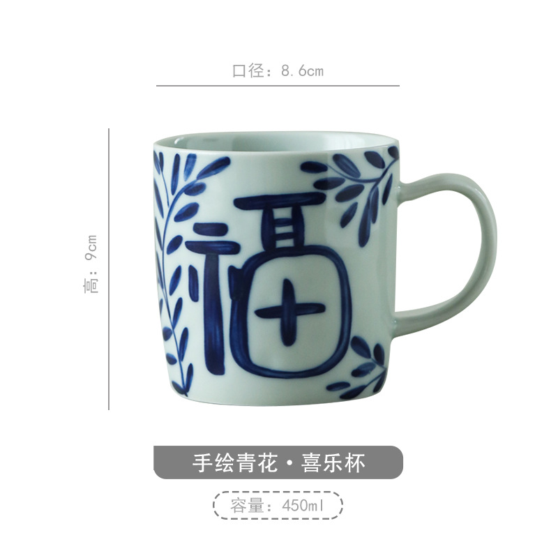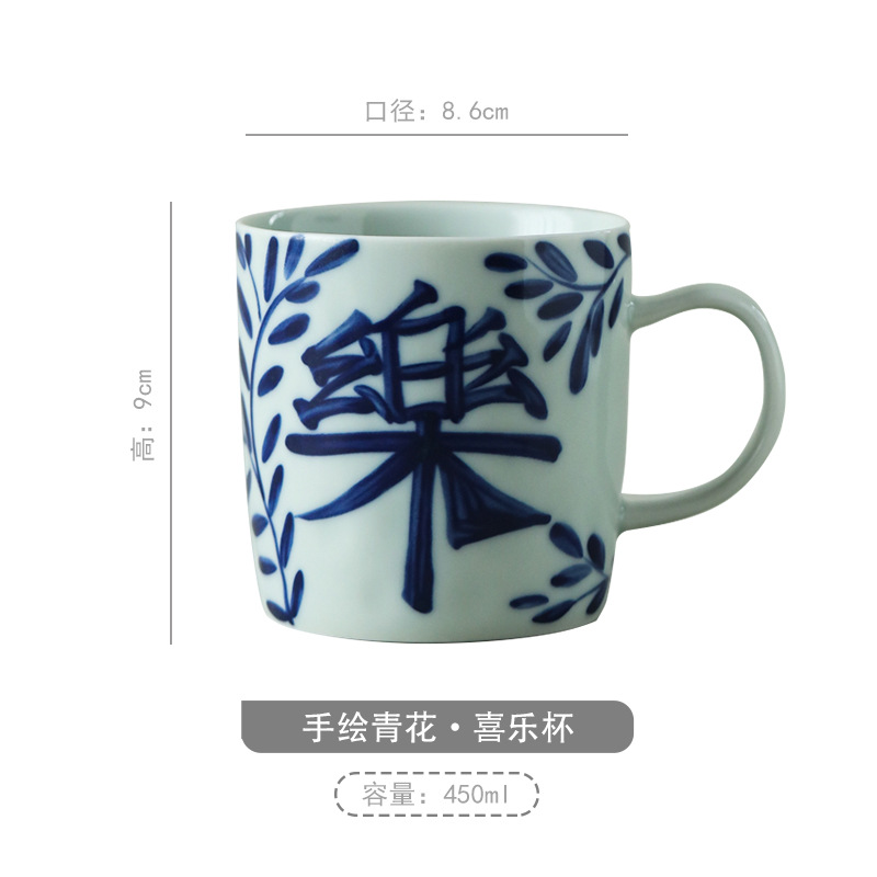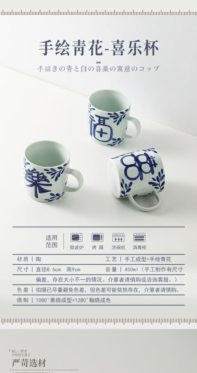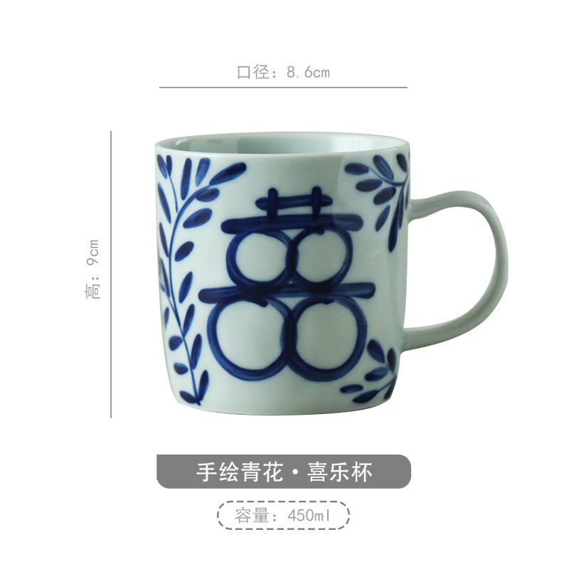 景德镇创意手绘青花陶瓷马克杯情侣杯喜乐杯送闺蜜新娘结婚礼物
