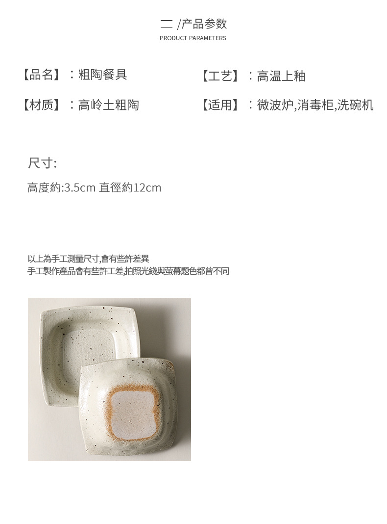 餐具批发陶瓷陶泥四方菜碟零食坚果盘茶点碟干果碟点心盘