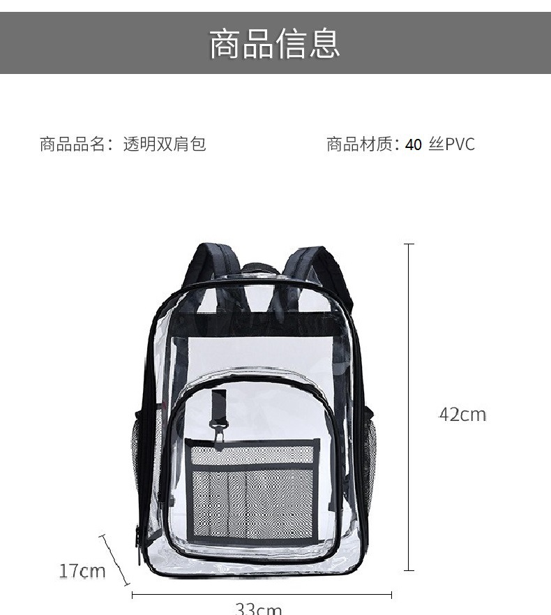 现货亚马逊跨境供应透明背包pvc双肩包户外运动包大容量学书包