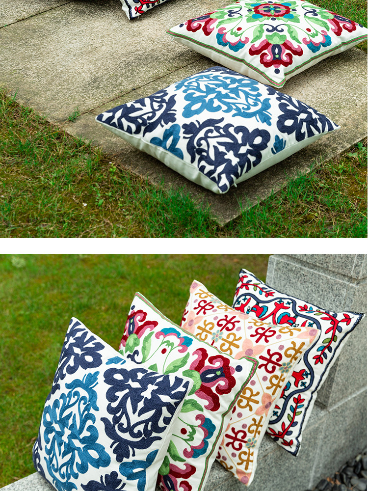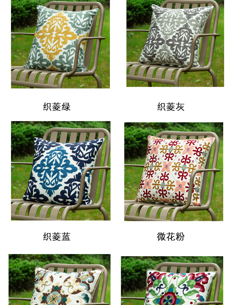 聚家家纺新款客厅 纯棉刺绣抱枕套 不含芯正方形45*高级靠垫沙发