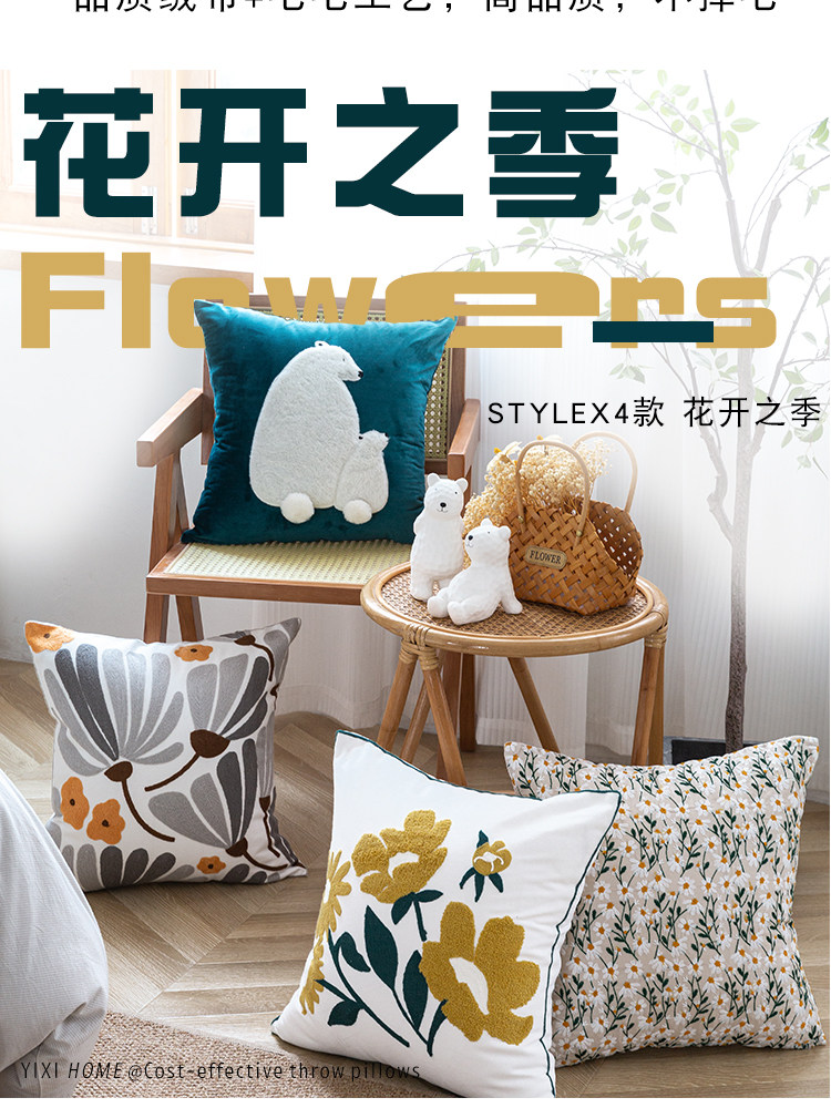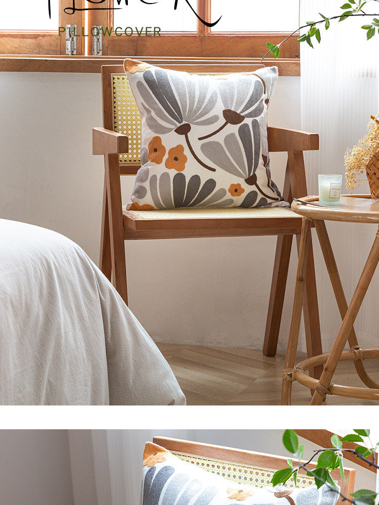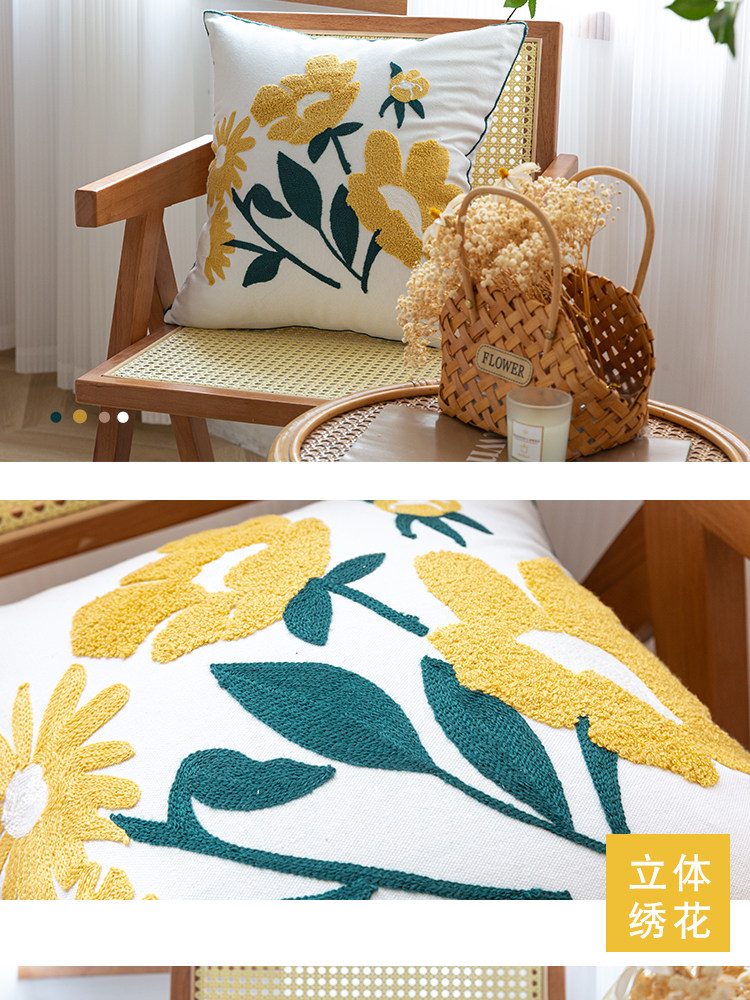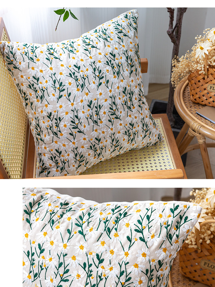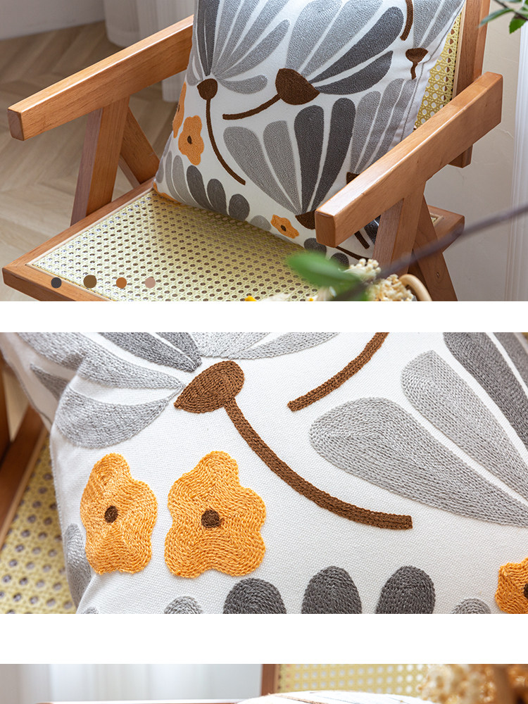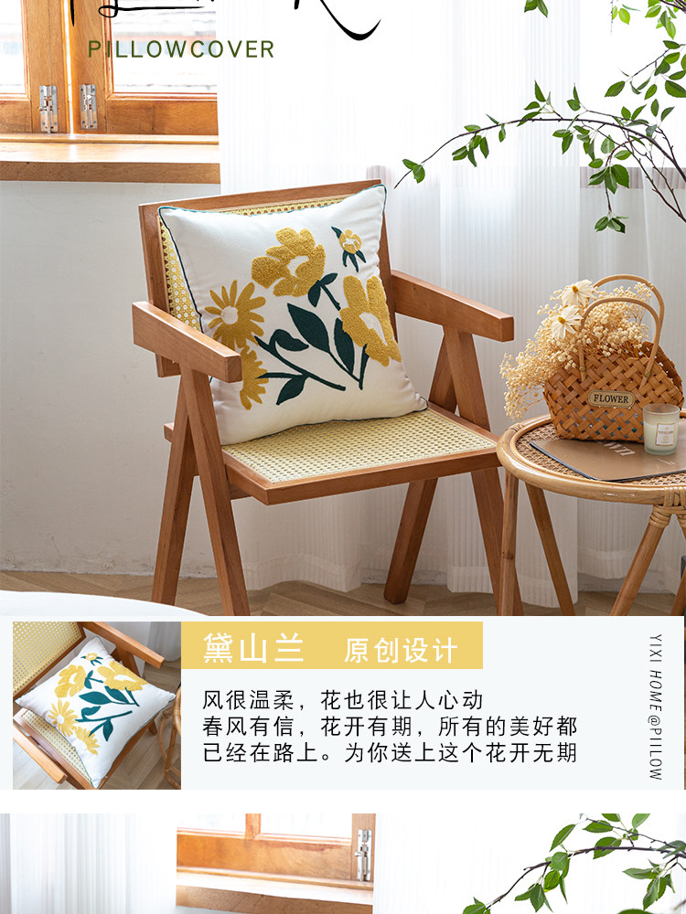 依兮 花卉刺绣抱枕客厅沙发椅子抱枕套不含芯床头睡觉靠垫午睡枕