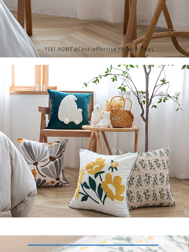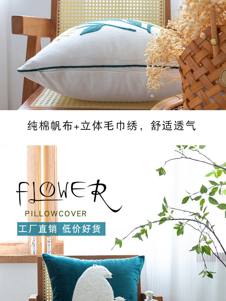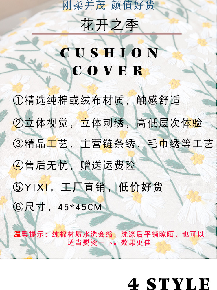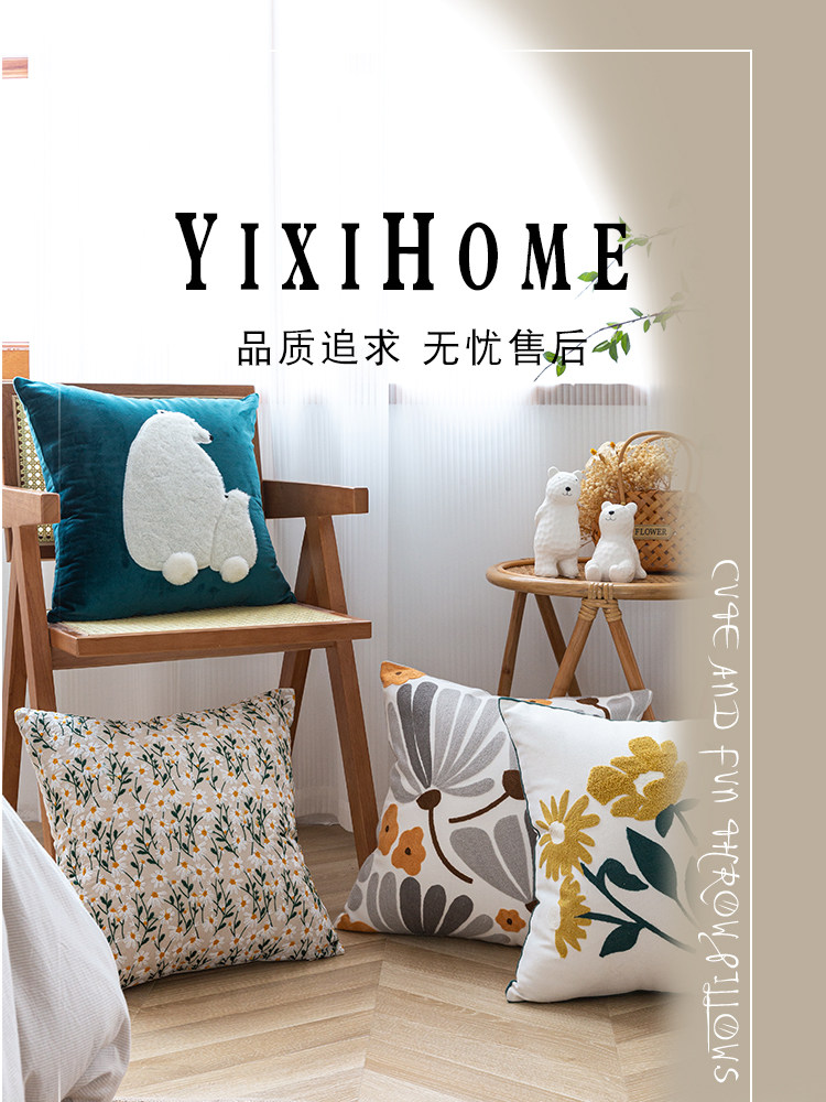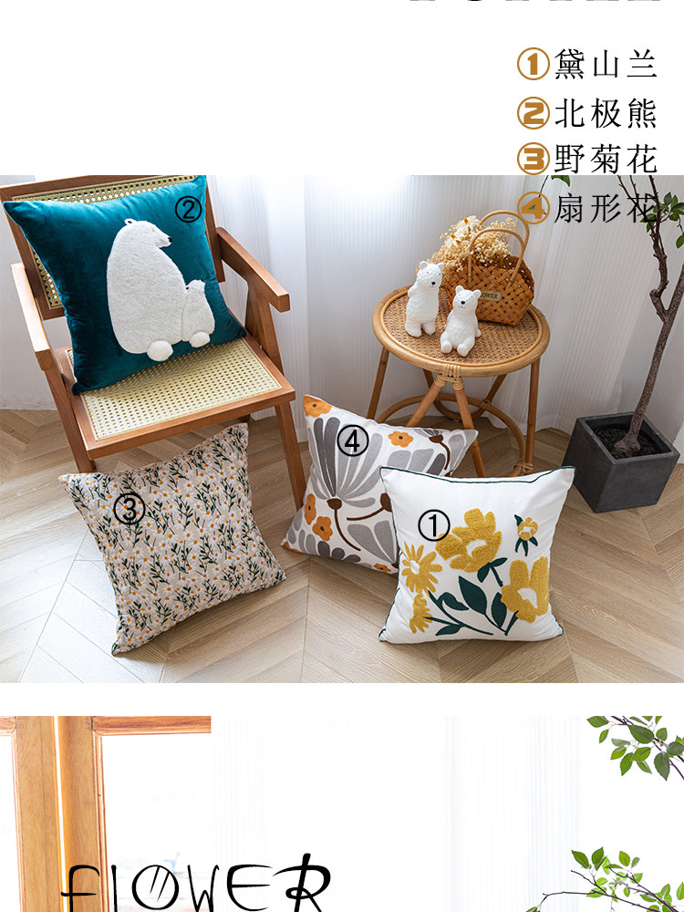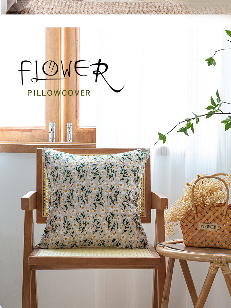 依兮 花卉刺绣抱枕客厅沙发椅子抱枕套不含芯床头睡觉靠垫午睡枕