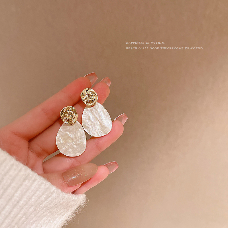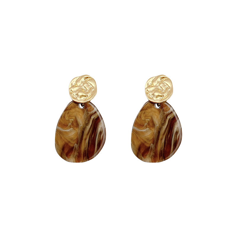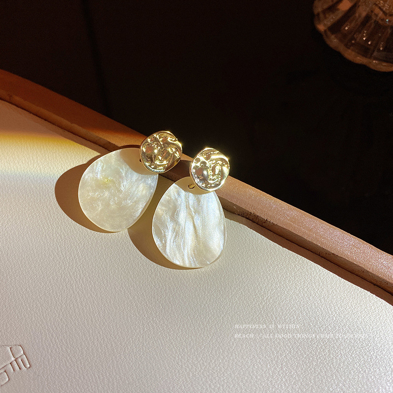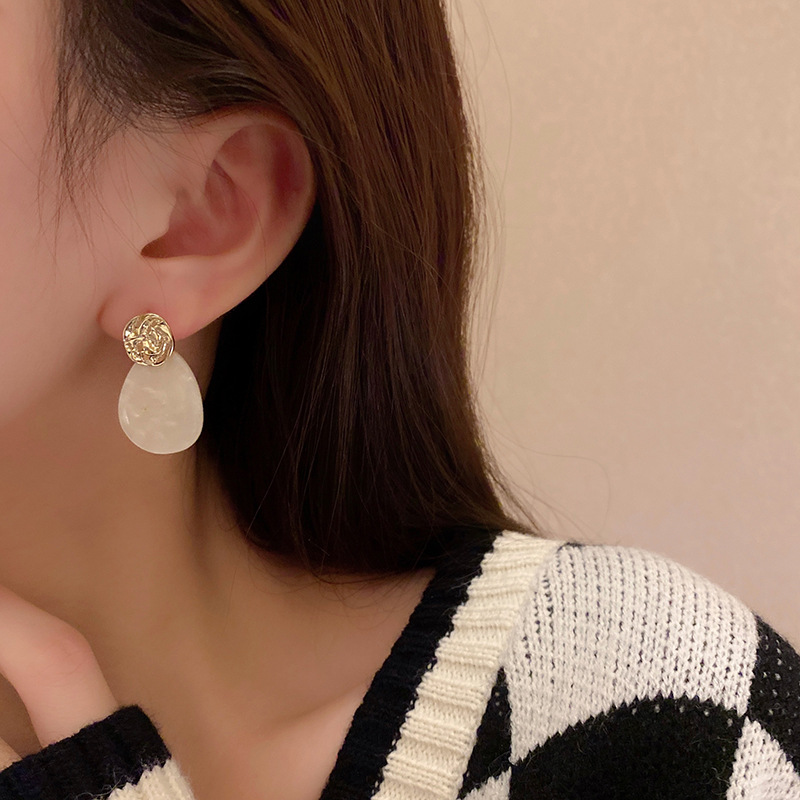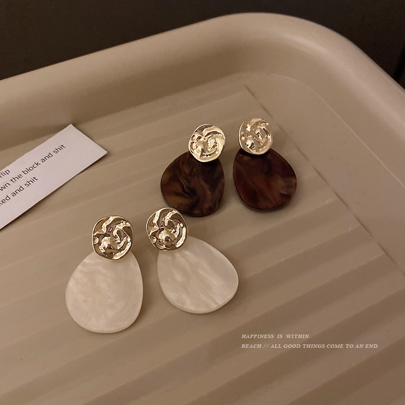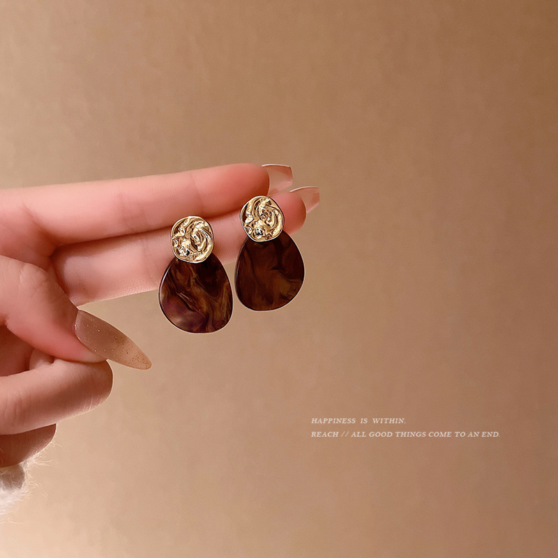 s925银针法式复古不规则耳钉简约百搭气质水滴醋酸耳坠冷淡风耳环