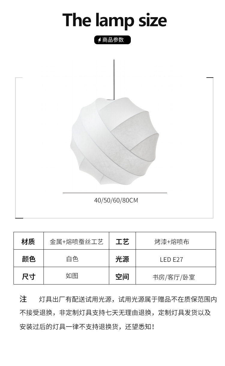 外贸专供北欧简约布艺灯客厅民宿灯蚕丝布侘寂风吊灯