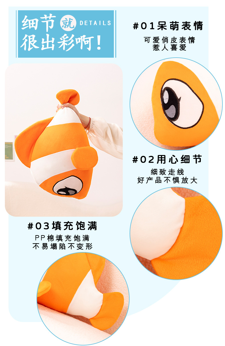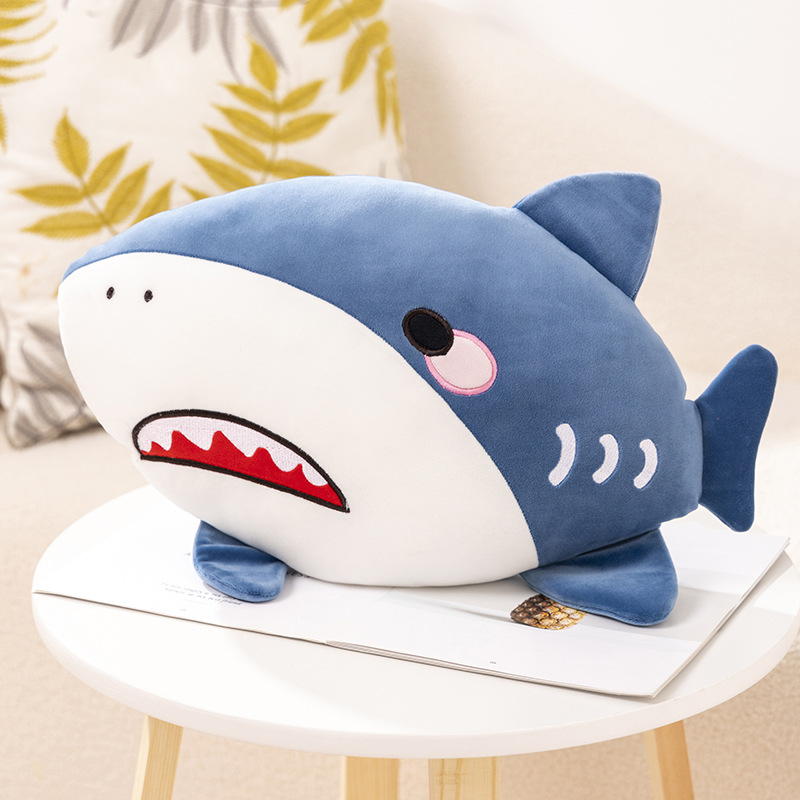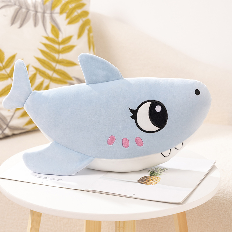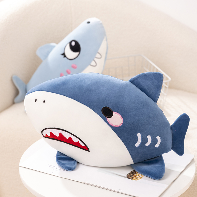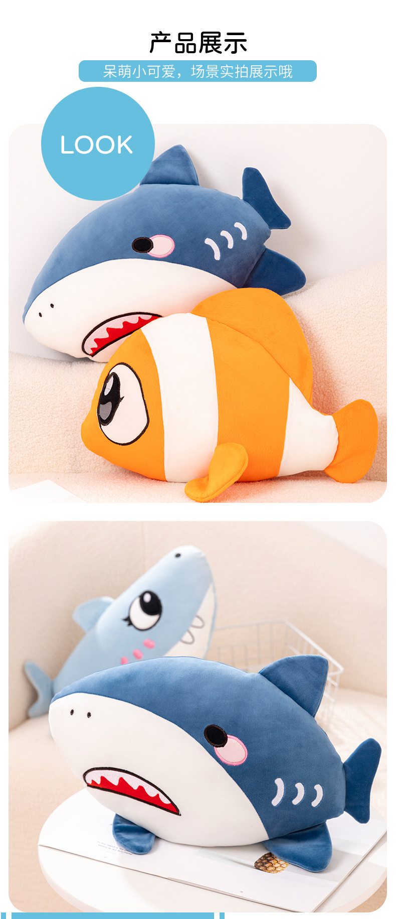 可爱鲨鱼抱枕毛绒玩具海洋馆动物靠垫小丑鱼娃娃批发儿童陪伴礼物