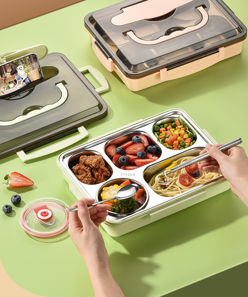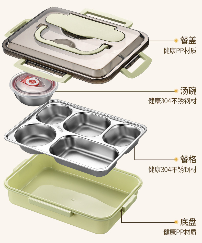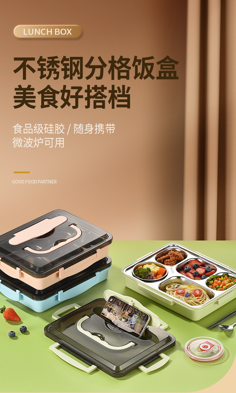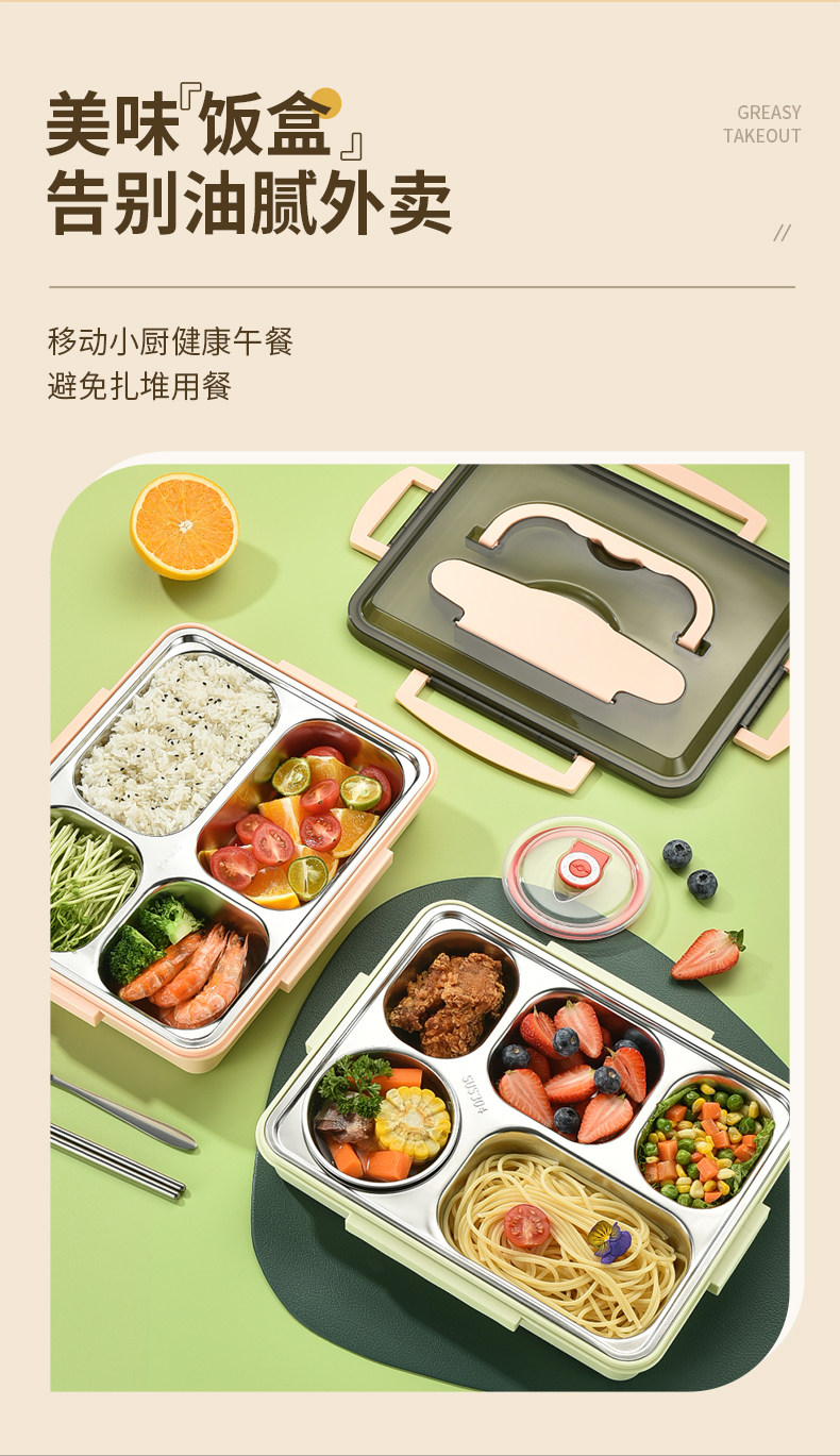 批发304不锈钢保温饭盒小学生分格食堂午餐便携上班族大容量可加