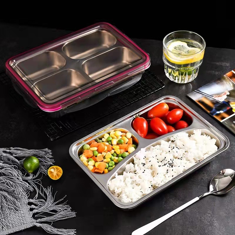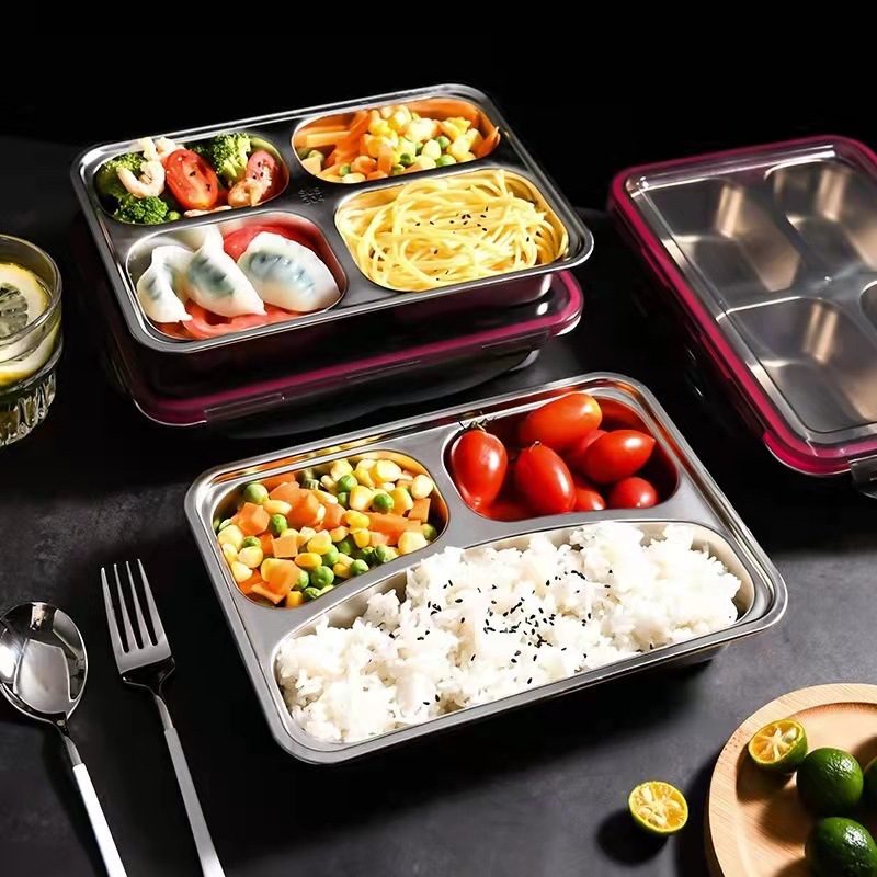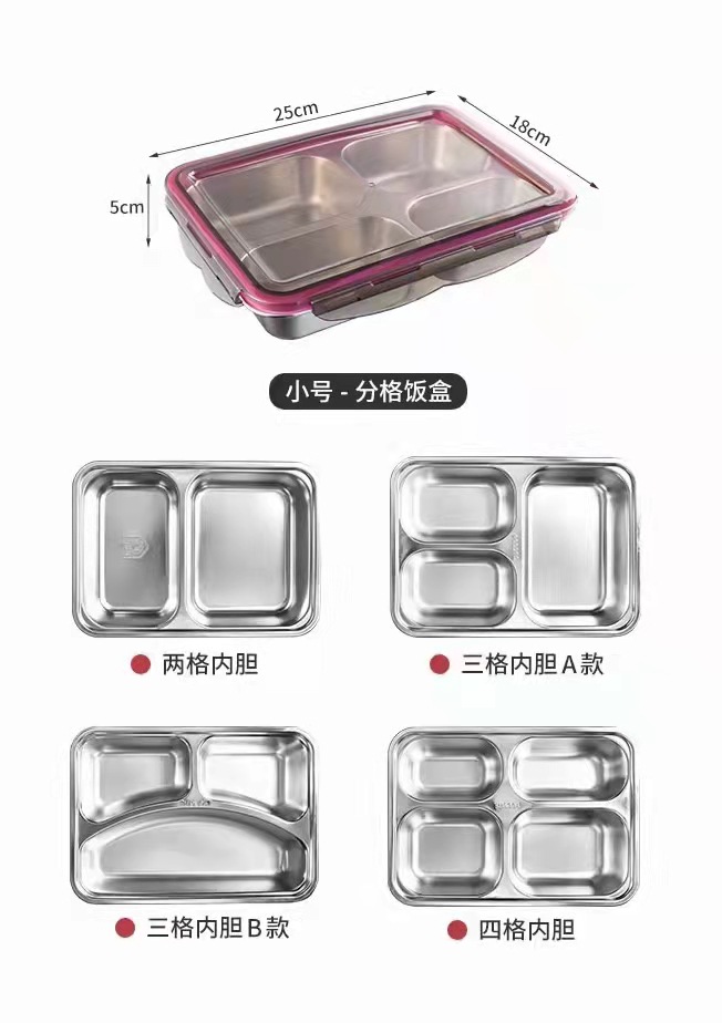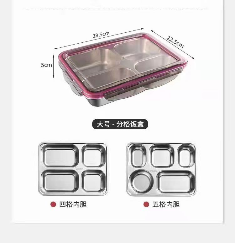 304儿童不锈钢分格餐盘学生饭盒成人上班便携式便当盒二三四五格