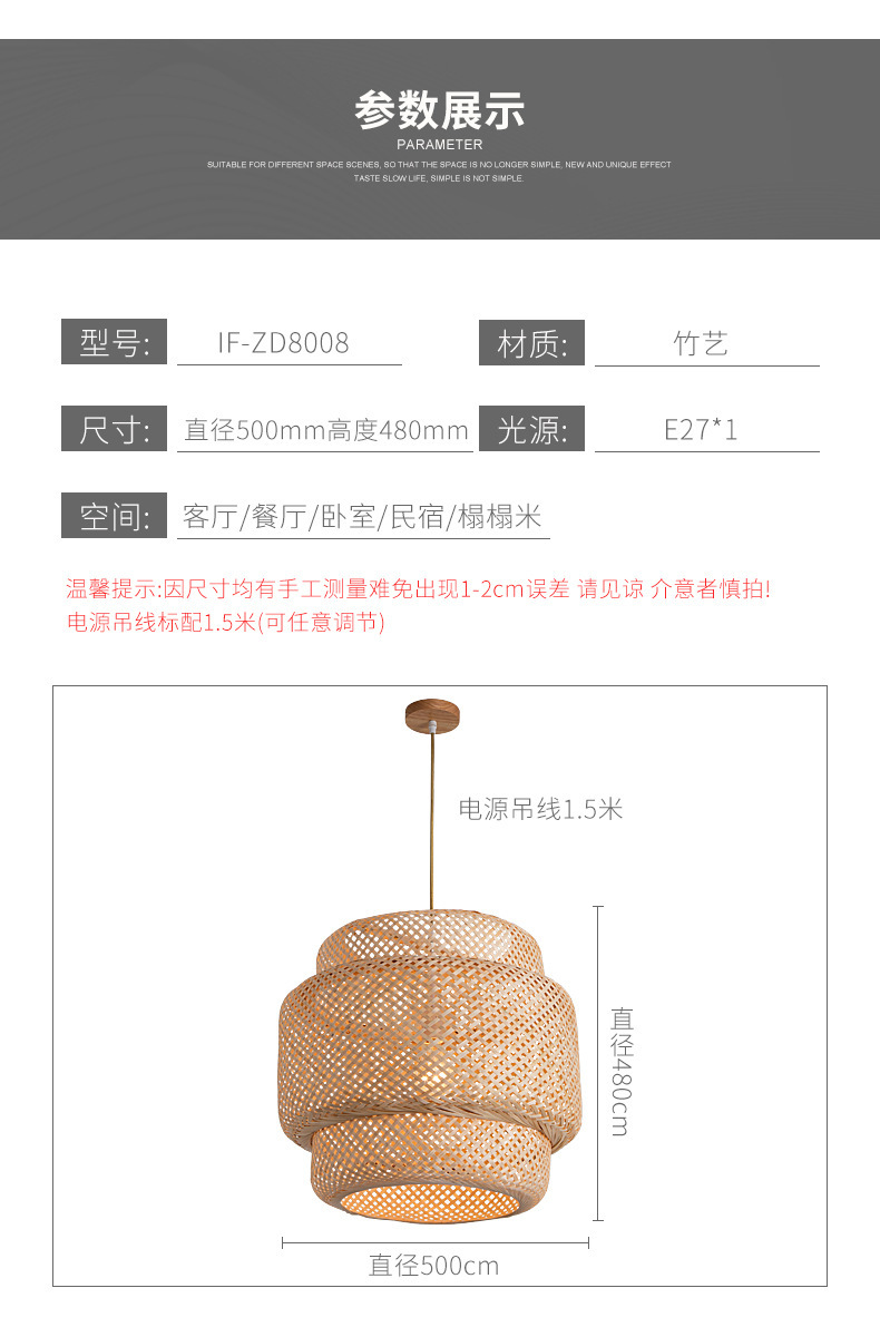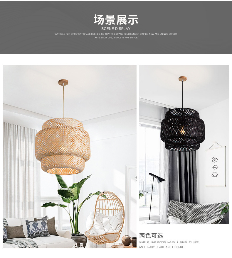 外贸专供东南亚竹编吊灯民宿客栈简约灯书房庭院艺术竹艺灯具